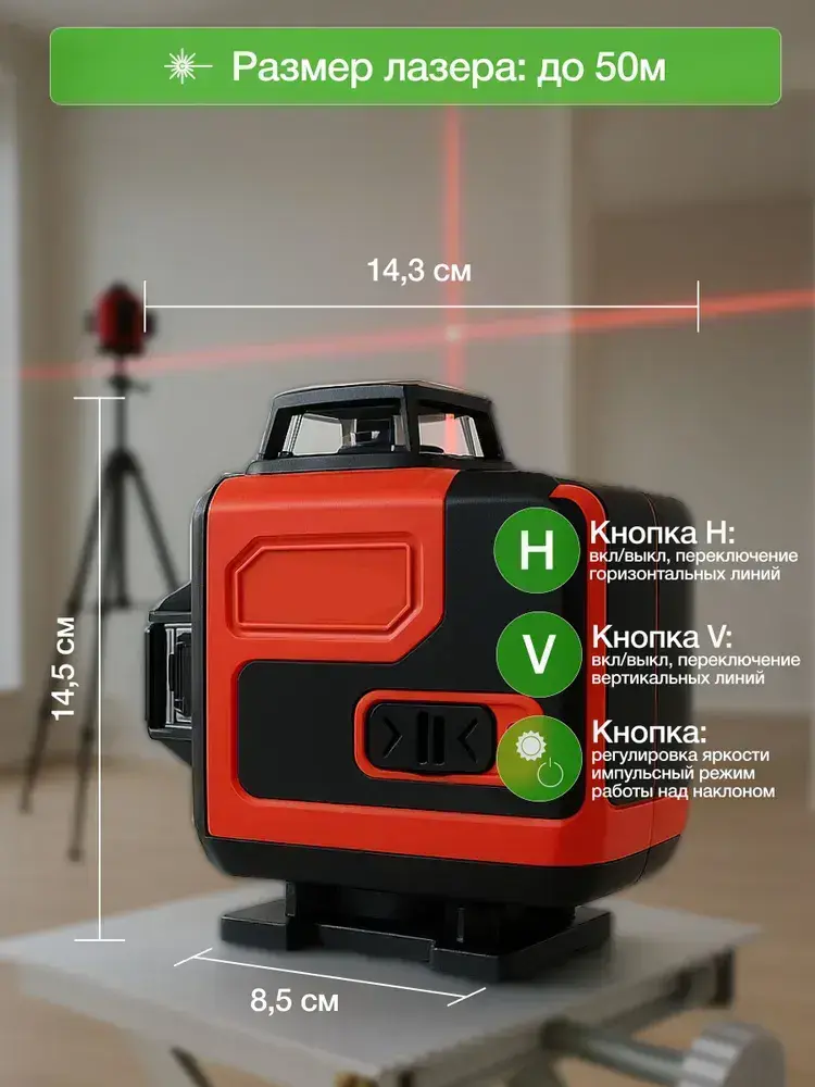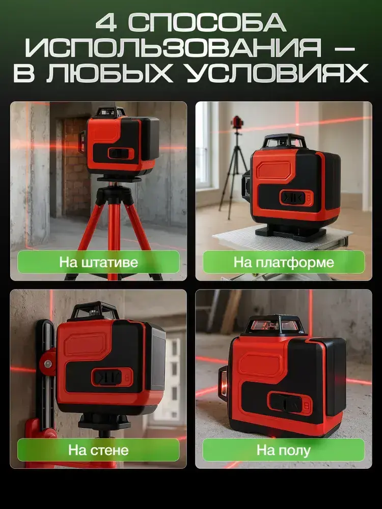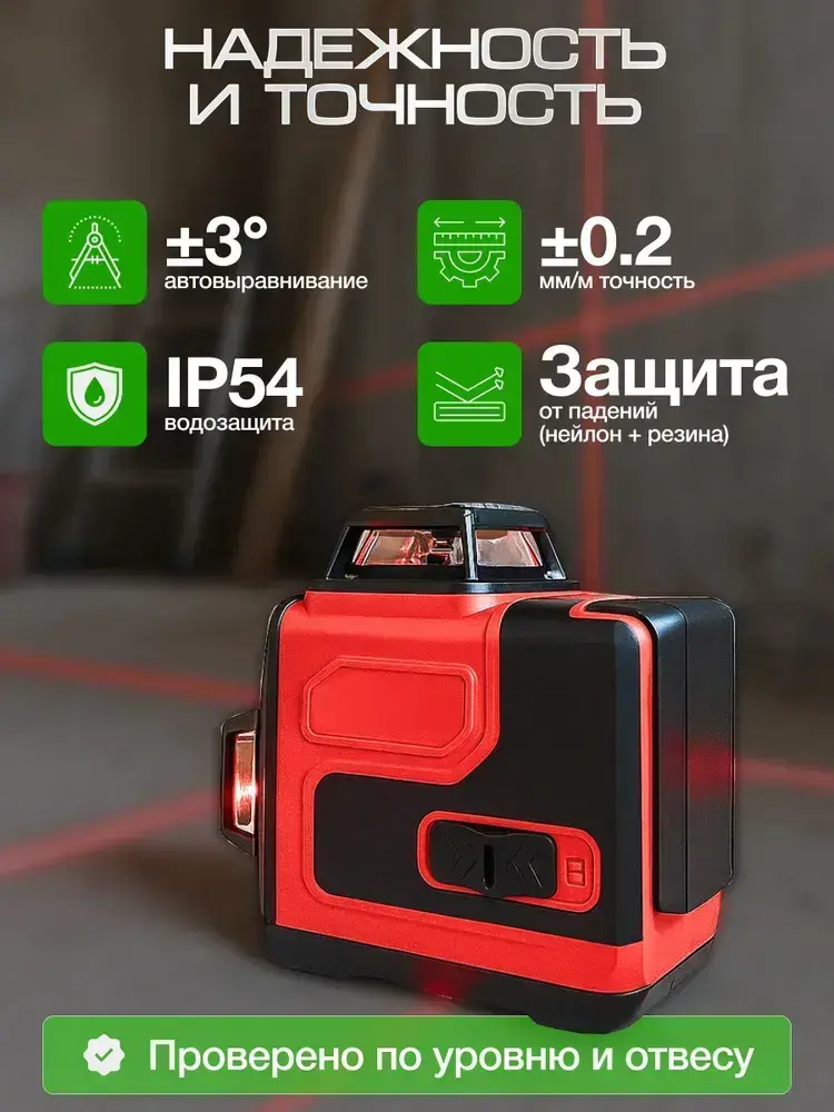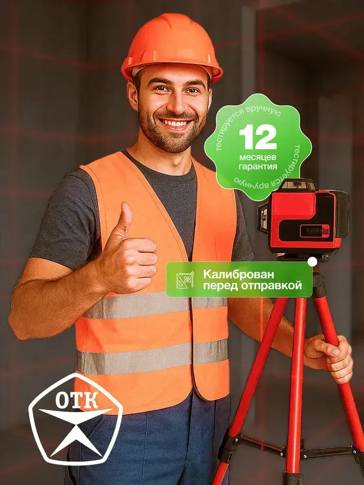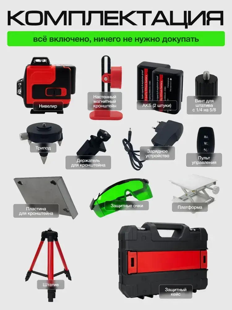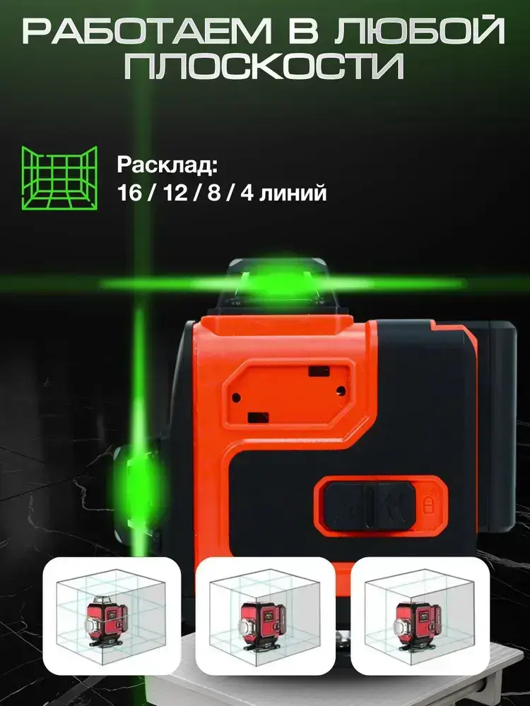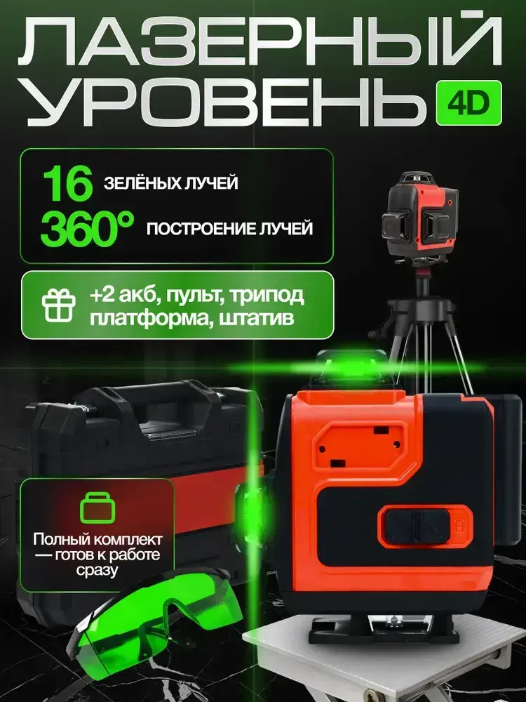Лазерный уровень, 360, самовыравнивающийся, 16 лучей, 2 АКБ