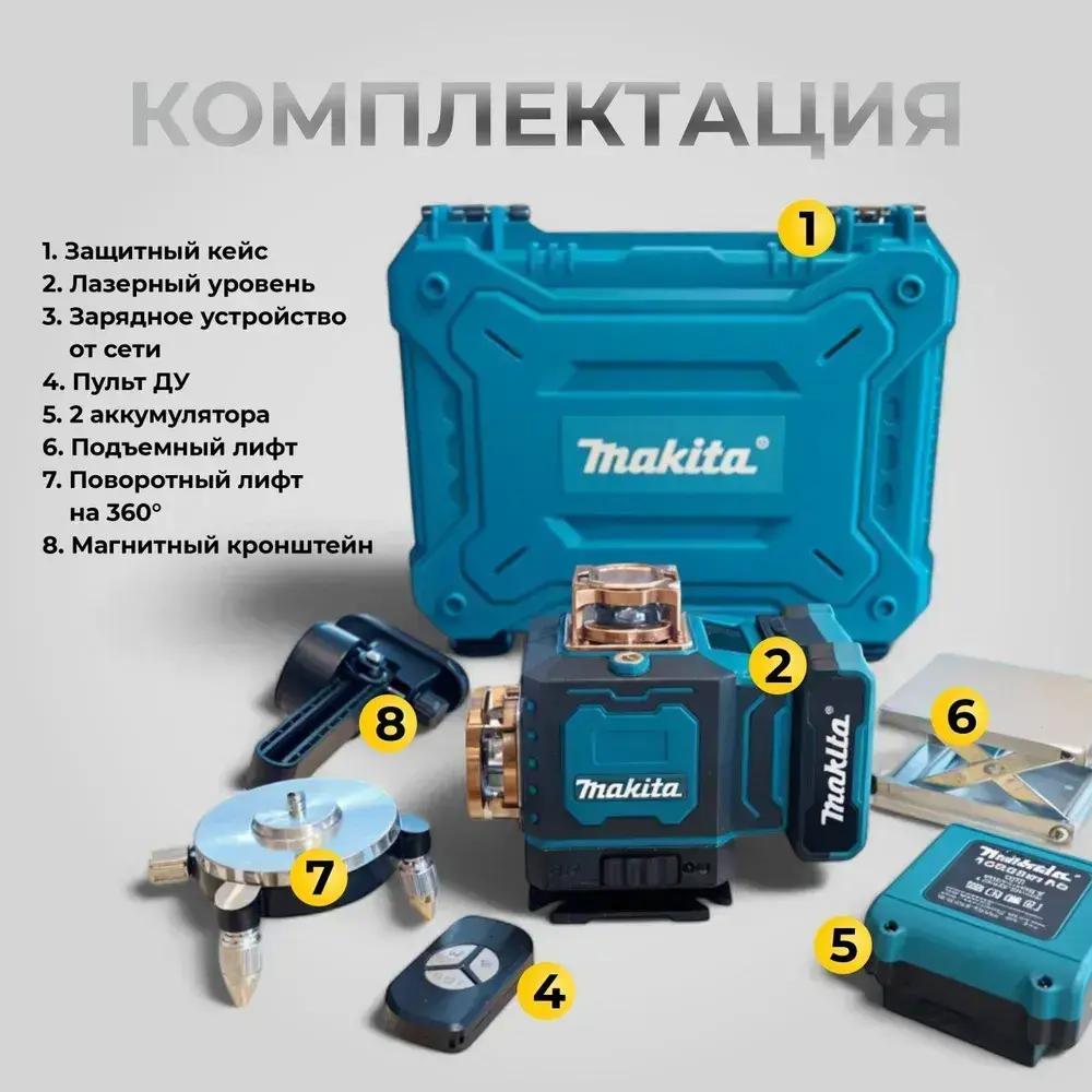 Лазерный уровень 4D 16 лучей 360, нивелир Makita / Макита, с LED-экраном портативный, с гарантией 5 лет