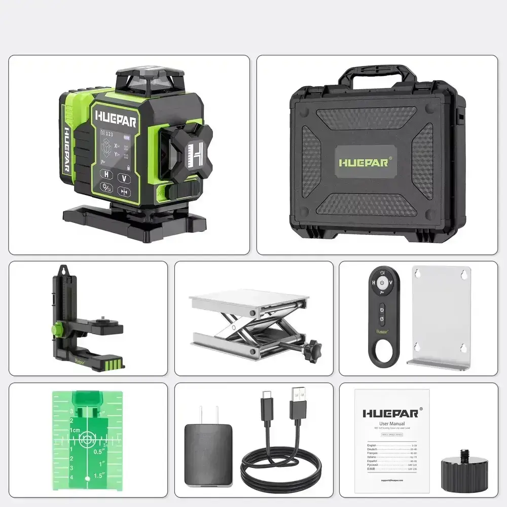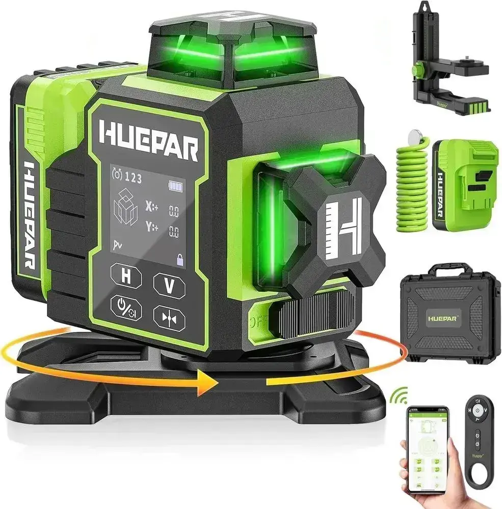 Лазерный уровень Huepar W04CG (ТОЧНЫЙ) с поворотным электромотором и дисплеем