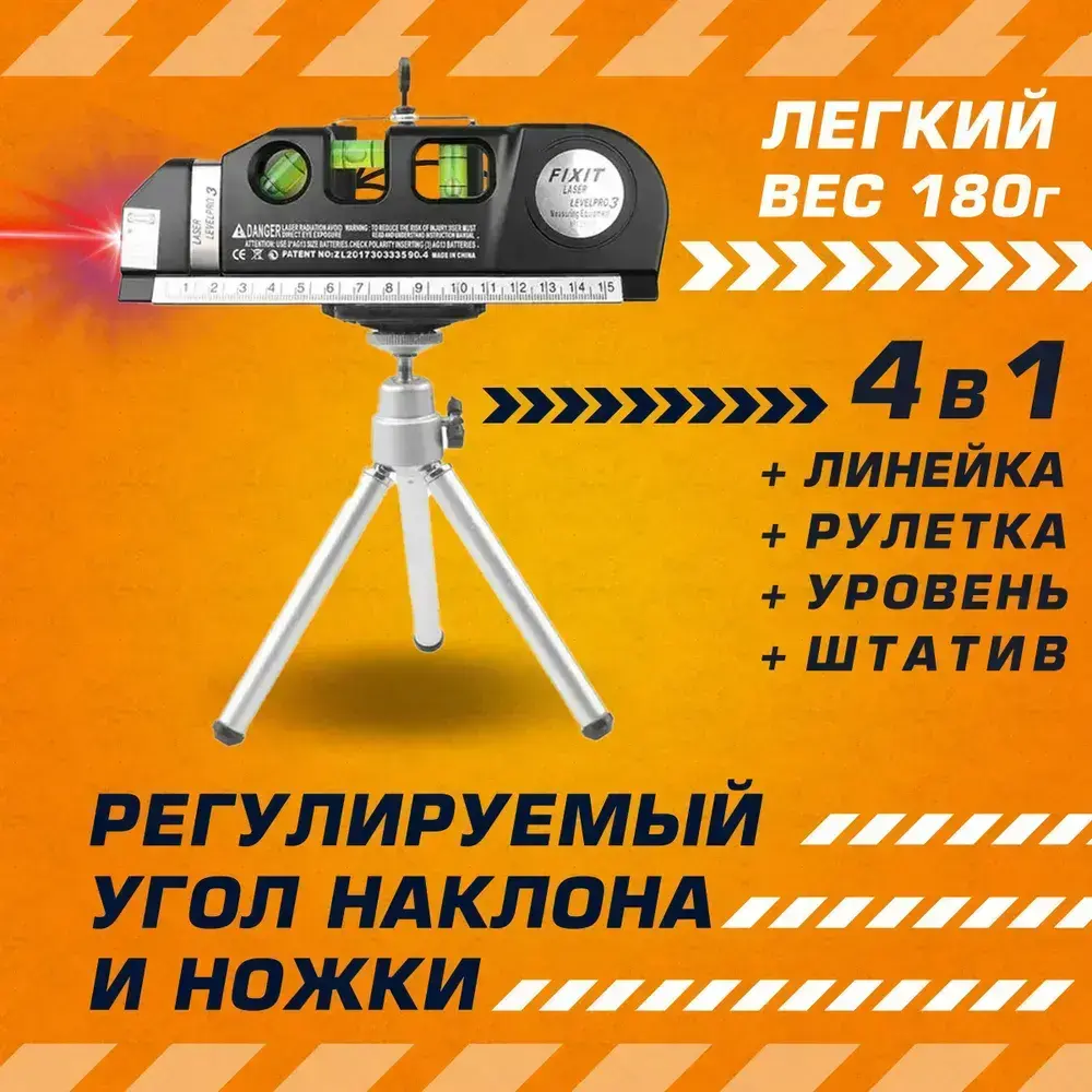 Лазерный уровень и линейка, рулетка, штатив и нивелир, инструменты для ремонта и строительства 4в1, подарок мужчине