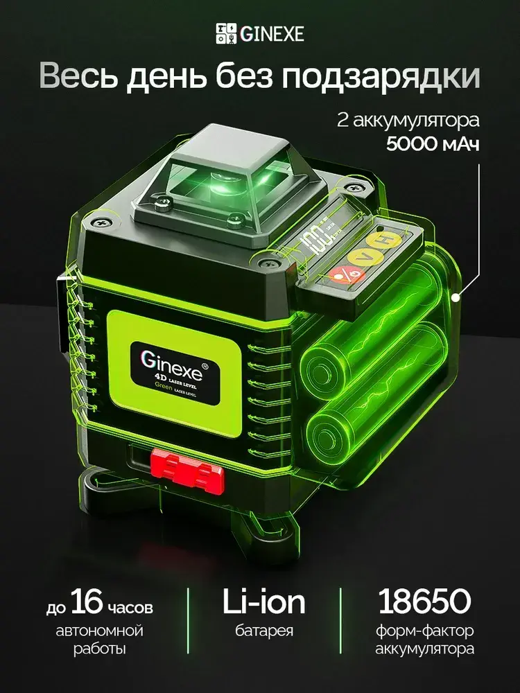 Лазерный уровень нивелир 4D, 16 линий, 2 аккумулятора.