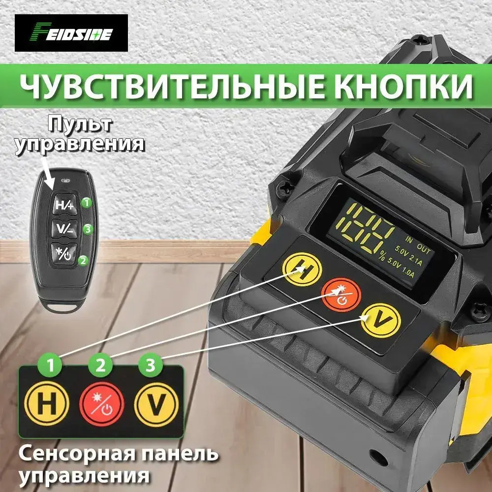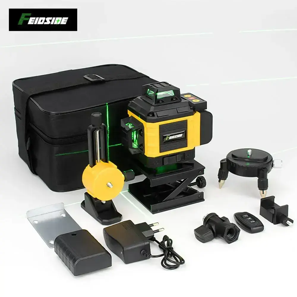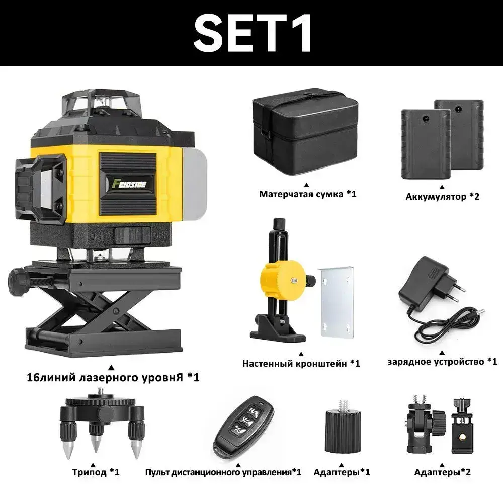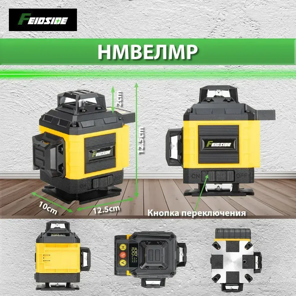 Лазерный уровень нивелир 4D 16 линий зеленый луч 360,2 Батарейки Комплект+С экранным дисплеем