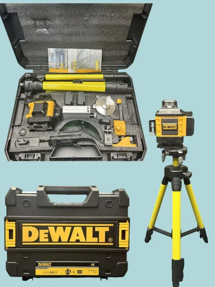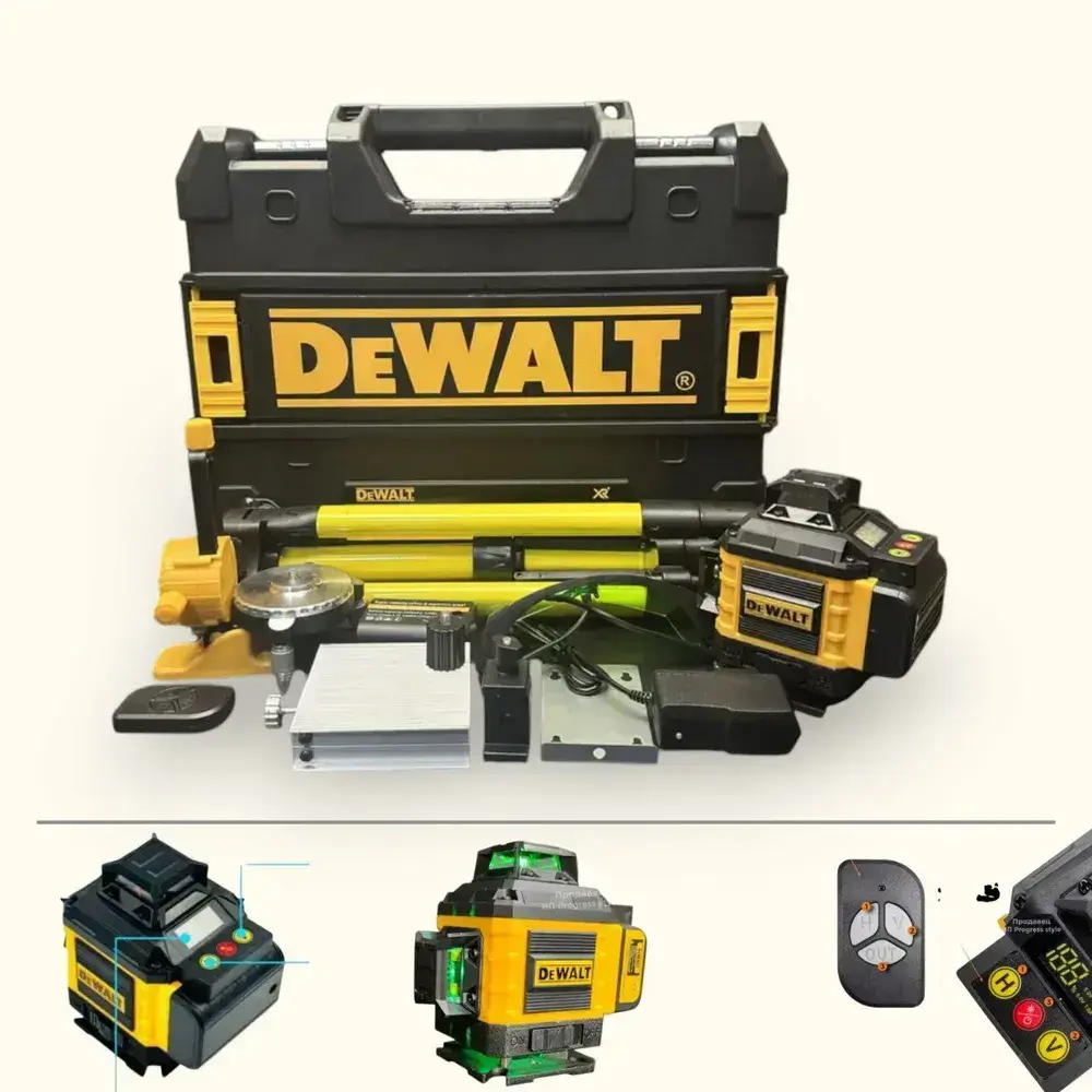 Лазерный уровень / нивелир 4х360 Dewalt с аксессуарами в сумке, зеленый луч 16 линий 4D