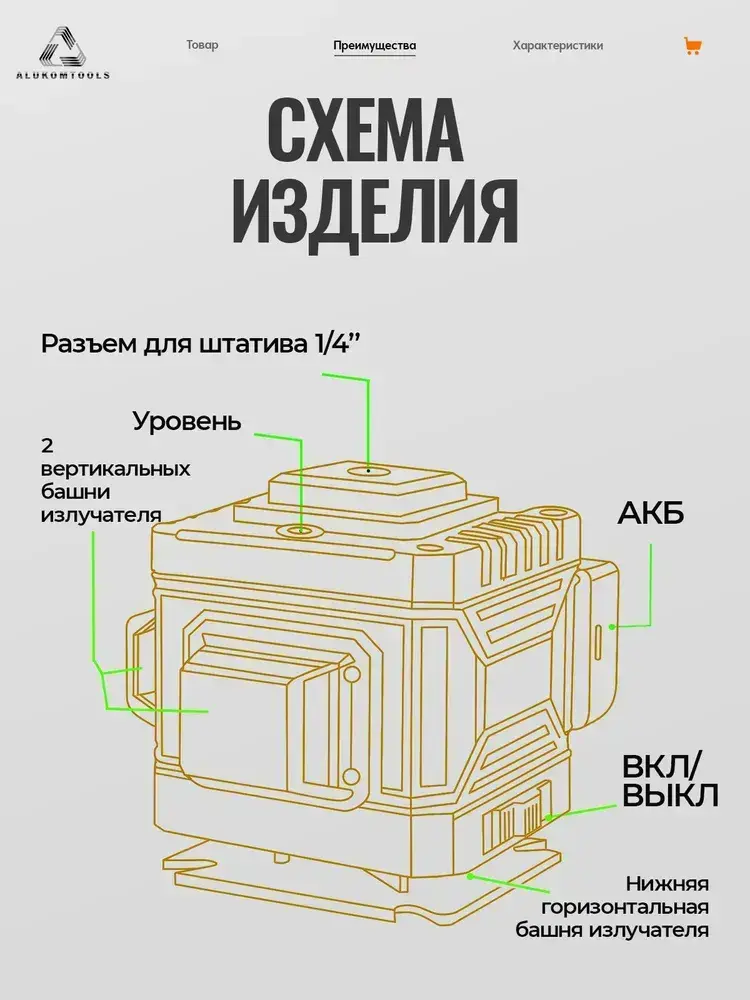 Лазерный уровень нивелир ALUKOMTOOLS 3D 12 линий 360 градусов, откалиброван, с гарантией