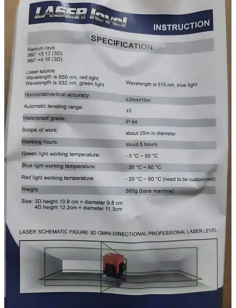 Лазерный уровень нивелир самовыравнивающийся строительный/16 линий 4D/Зеленый луч/ 360 градусов
