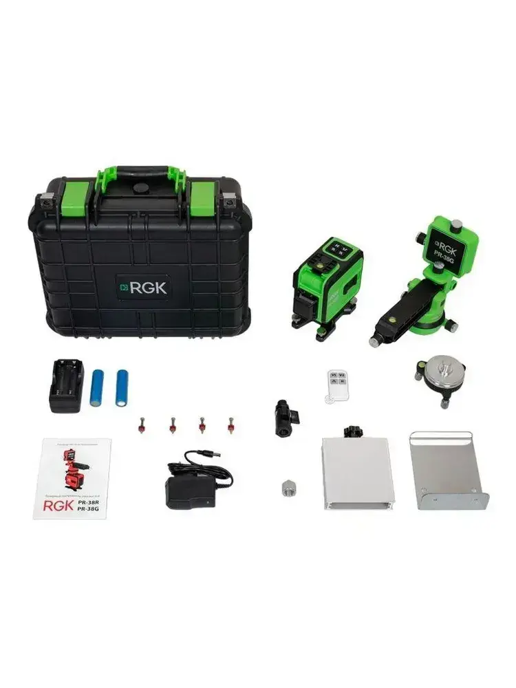 Лазерный уровень RGK PR-38G, 0,2 мм/м / 3х360 / зеленый луч (арт. 776066)