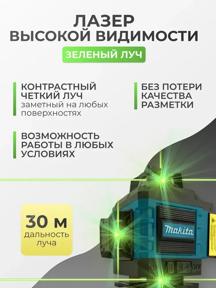 Лазерный уровень строительный Makita 360 4D / Нивелир, 16 лучей с пультом управления и штативом, Зеленый луч 360 Makita