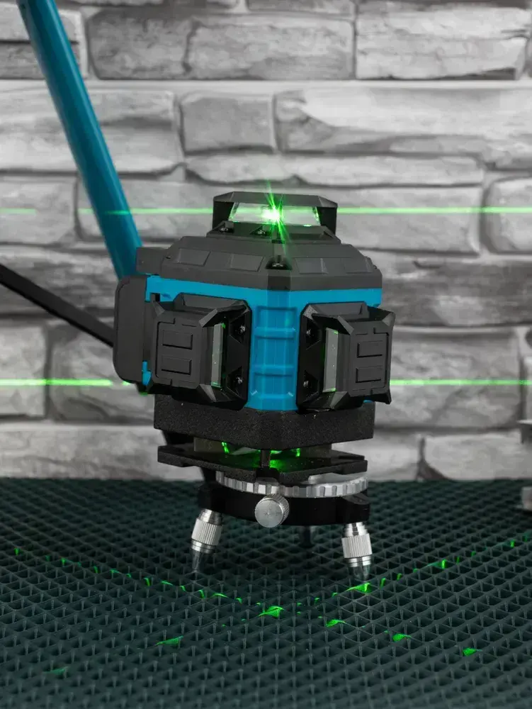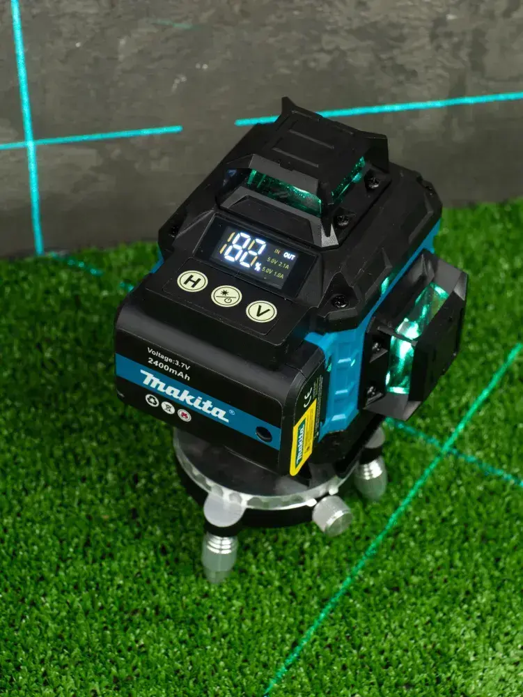 Лазерный уровень, строительный, нивелир 360 аккумуляторный 4d, 16 зеленых лучей. 2 АКБ