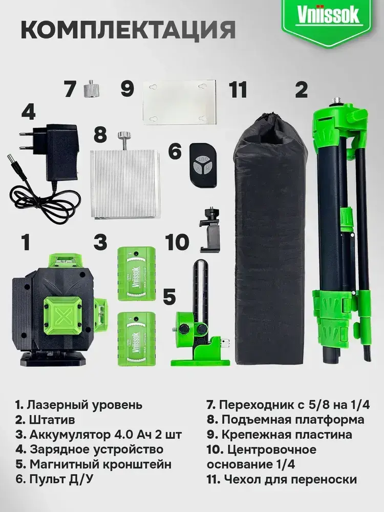 Лазерный уровень VNIISSOK Зеленый 16 лучей с пультом управления и штативом 1м. ,Зеленый луч уровень 360 град