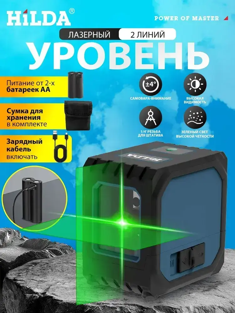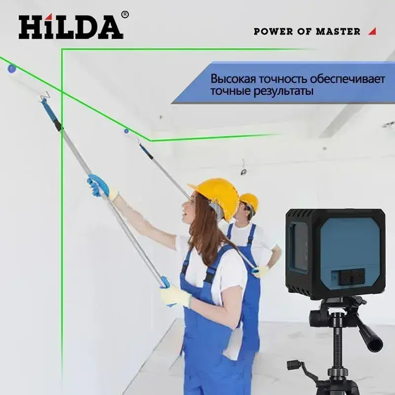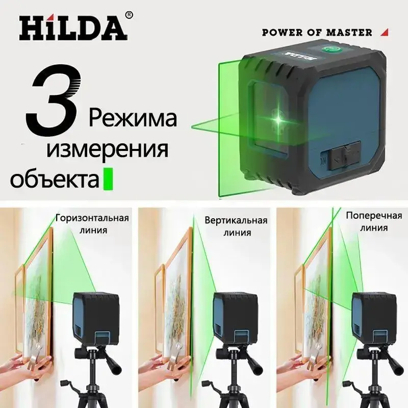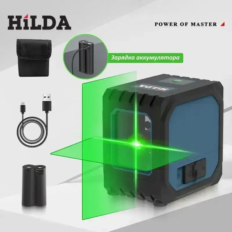 лазерный уровень,HILDA,2 линии, С литиевой батареей, Зеленыйлуч