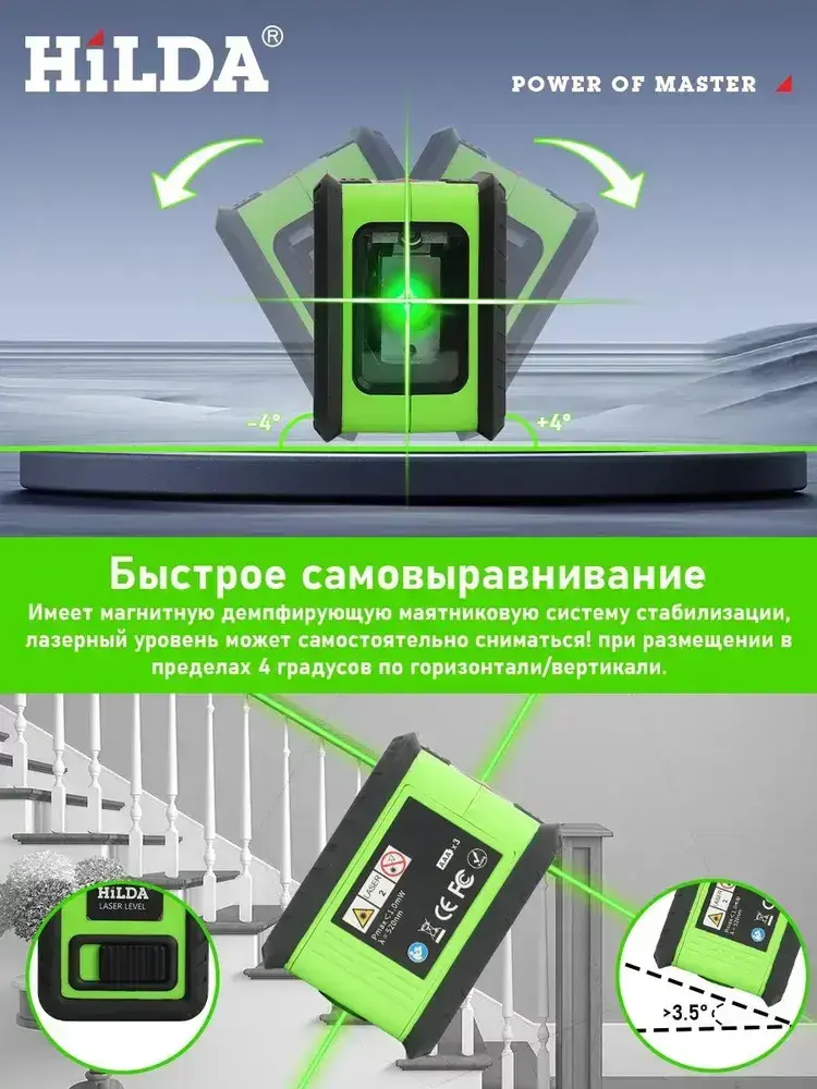 лазерный уровень,уровень лазерный, 2 линии, нивелир Зеленыйлуч