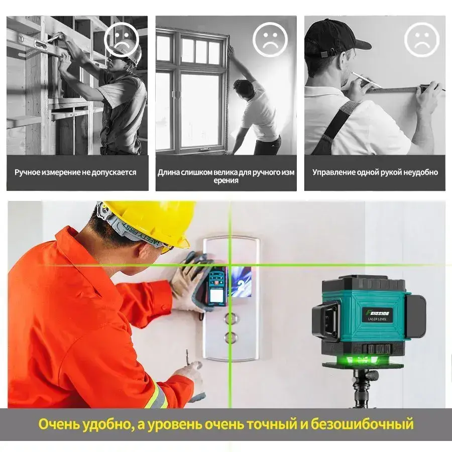 Лазерный уровень,Зеленый луч,3D 12 Линий