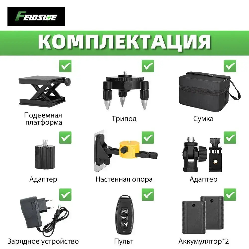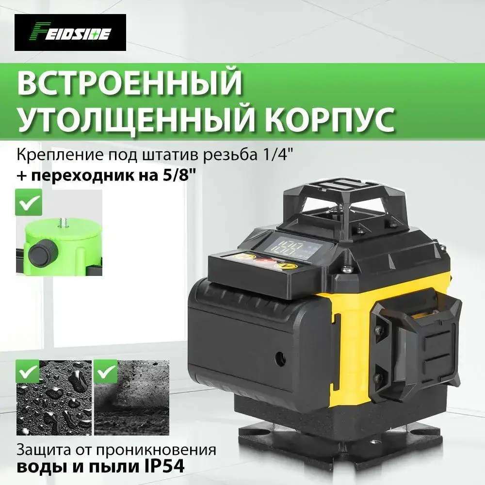 Лазерный уровень,Зеленый луч,4D 16 Линий,Дисплей заряда батареи,2 Батарейки Комплект