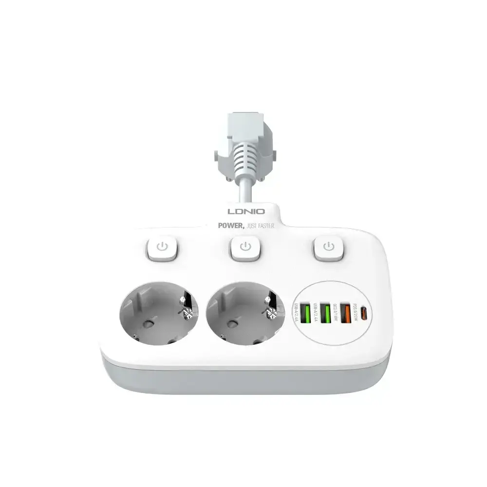 LDNIO сетевой фильтр разветвитель, модель SE2435, 2 розетки, 4 USB, тройник с заземлением и выключателем, белый