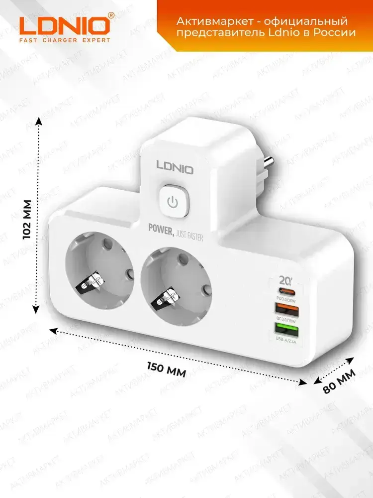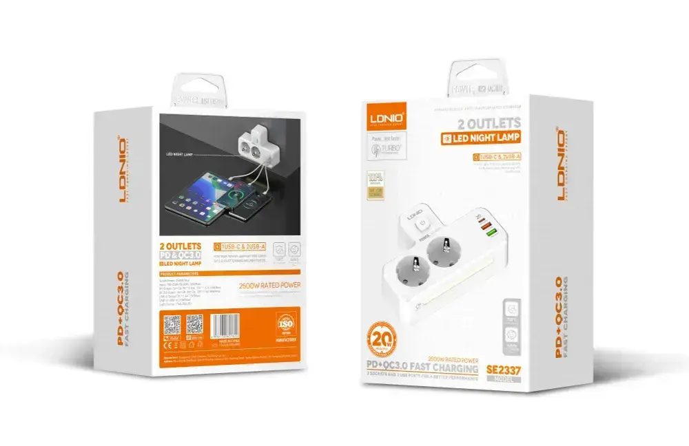 LDNIO сетевой фильтр разветвитель с умной зарядкой, модель SE2337, LED светильник, 3 USB, тройник с заземлением и выключателем, белый
