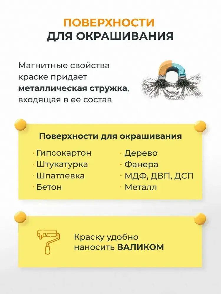 Le Vanille Краска Быстросохнущая, Магнитная, Акриловая, Глубокоматовое покрытие, Матовое покрытие, 1 л, 2.5 кг, желтый