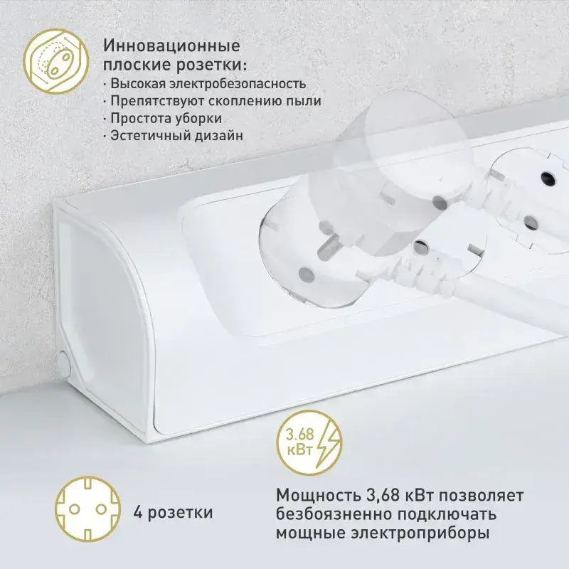 Legrand Удлинитель угловой с заземлением 4 розетки без кабеля, цвет: белый, 694503