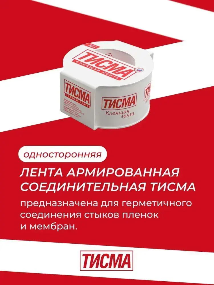 Лента армированная односторонняя соединительная ТИСМА (скотч для пленок) 0,06х20 м