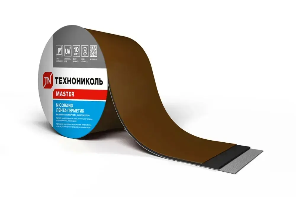 Лента-герметик NICOBAND 10 м х 10 см коричневый / гидроизоляции кровли Технониколь для ремонта крыши и окон