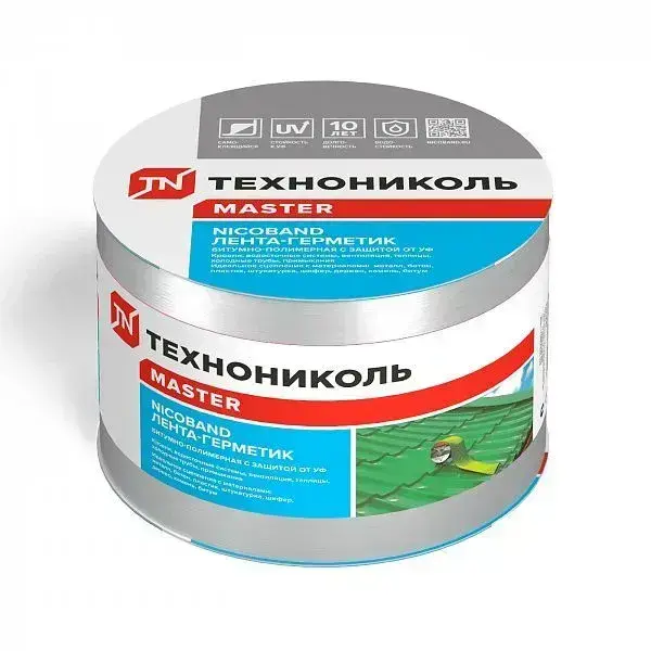 Лента-герметик NICOBAND 3 м х 10 см серебристый / гидроизоляции кровли Технониколь для ремонта крыши и окон