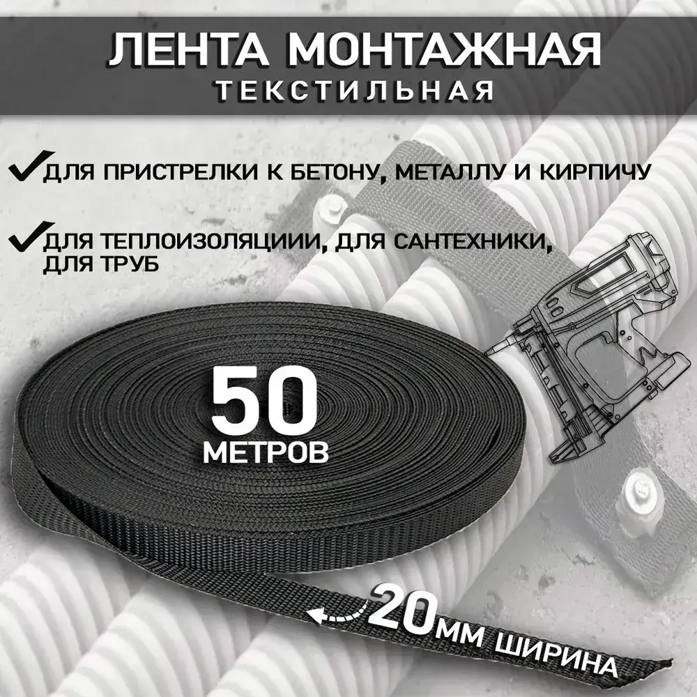 Лента монтажная текстильная 20мм (50м)