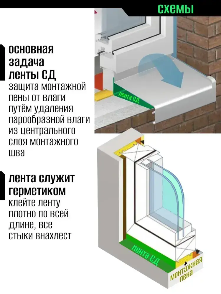 Лента пароизоляционная наружная для окон и дверей /Липлент СД 100/ 25 метров