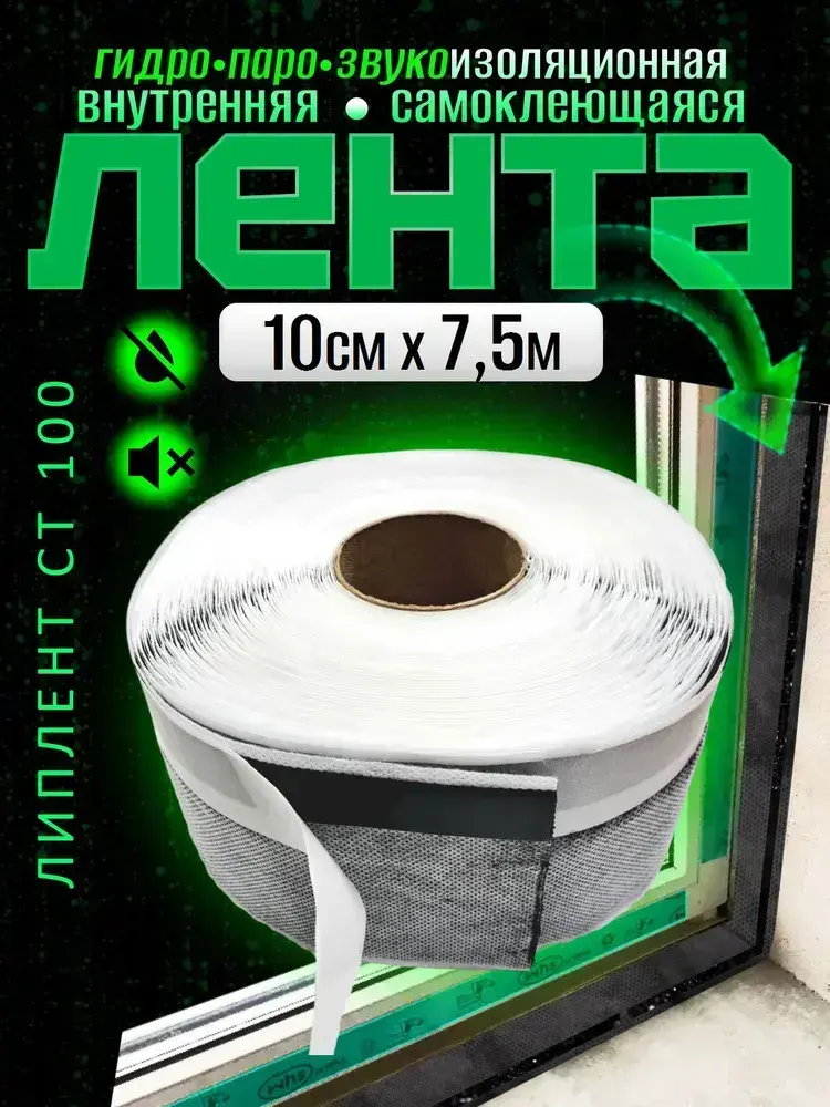 Лента пароизоляционная внутренняя /гидро-паро-звукоизоляционная для окон и дверей /Липлент СТ 100/ 7.5 метров