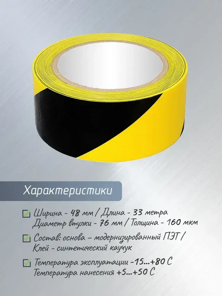 Лента разметочная чёрно жёлтая / Скотч для маркировки пола 33 метра