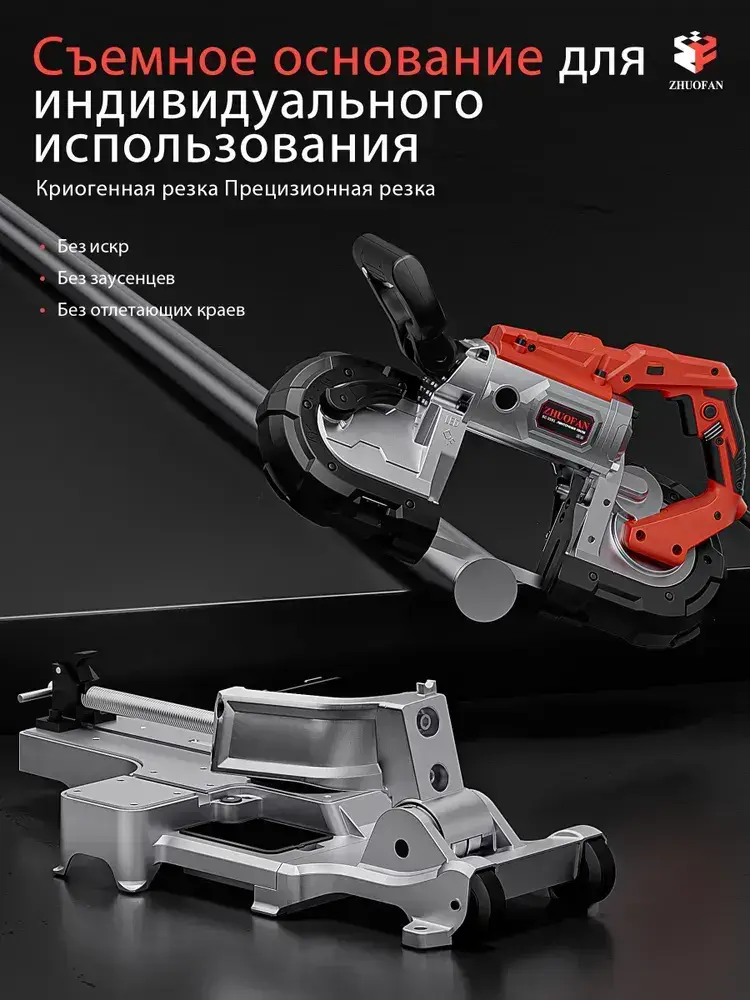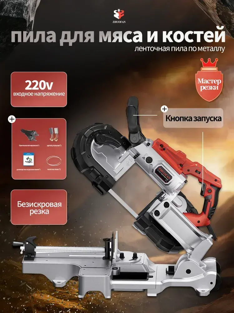 Ленточнопильный станок, отрезной станок ручной переносной, полупрофессиональный, ZHUOFAN, 220 В, 1100 Вт, 120 мм*120 мм