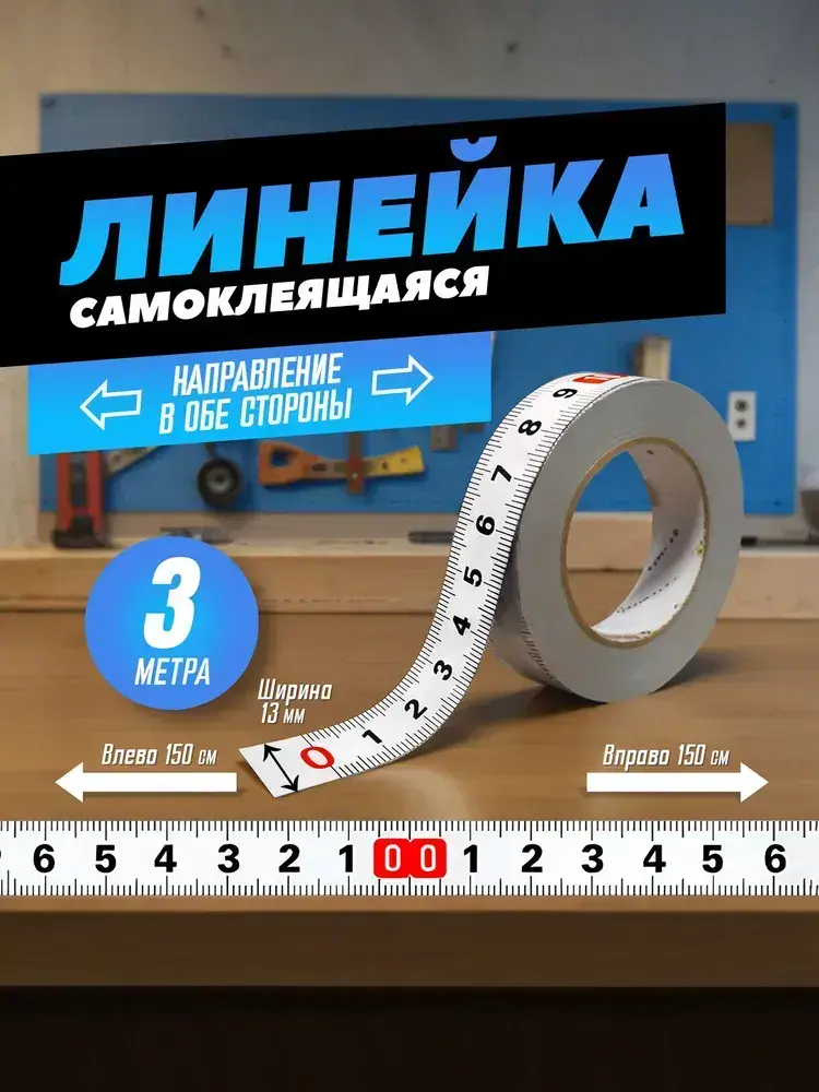 Линейка самоклеящаяся для стройки и ремонта, 3,0 м двунаправленная