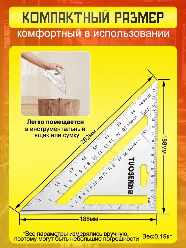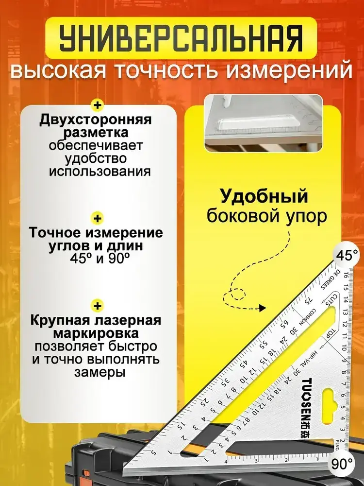 Линейка угольник Свенсона 188 мм черный, алюминий