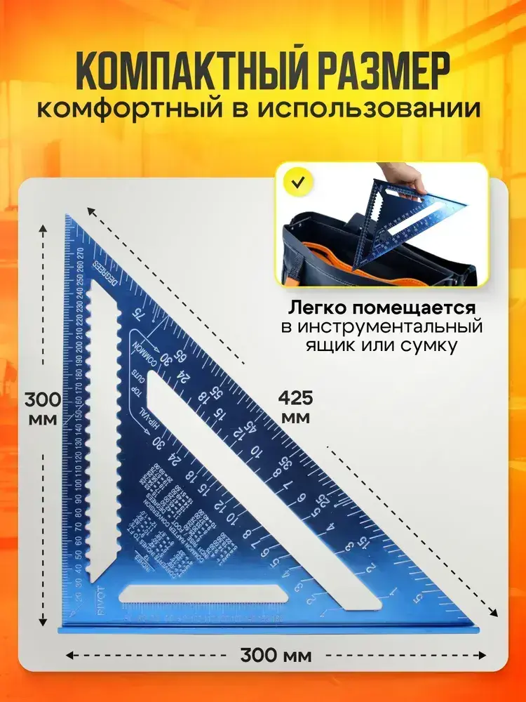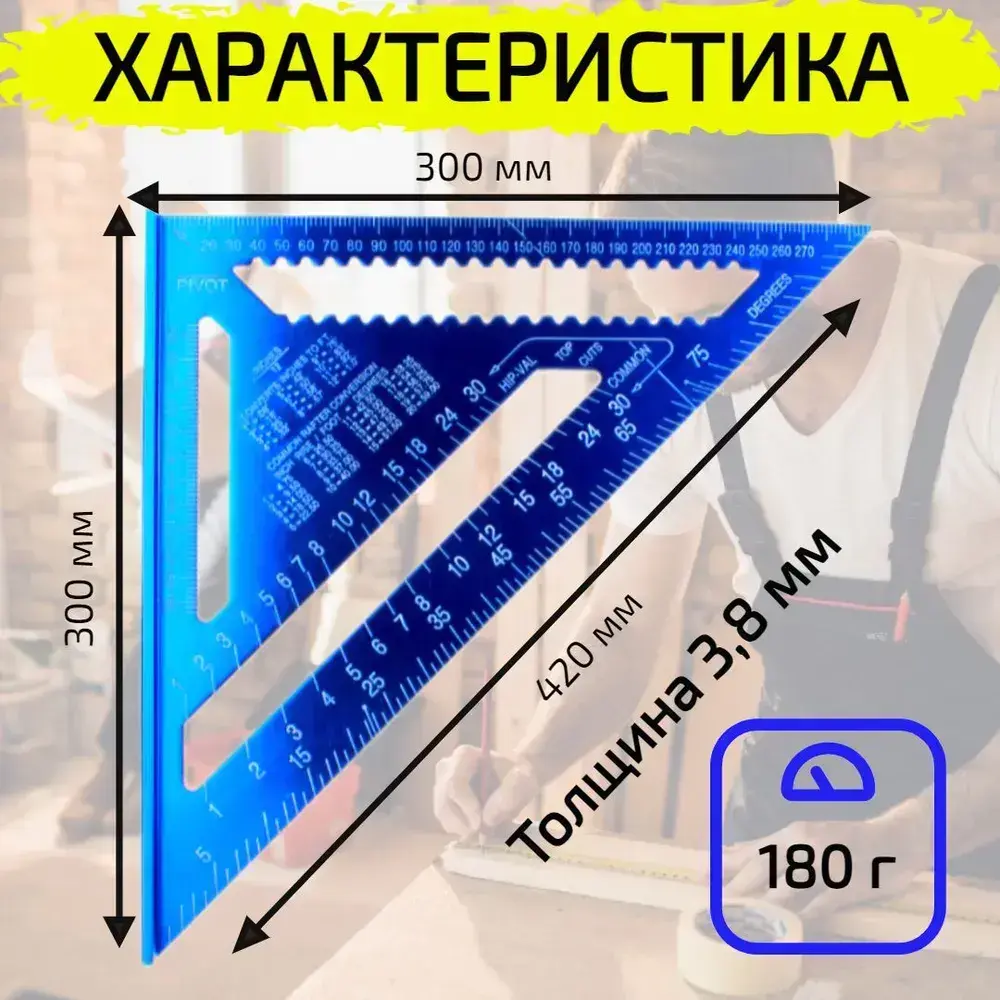 Линейка угольник Свенсона 300 мм синий, алюминий