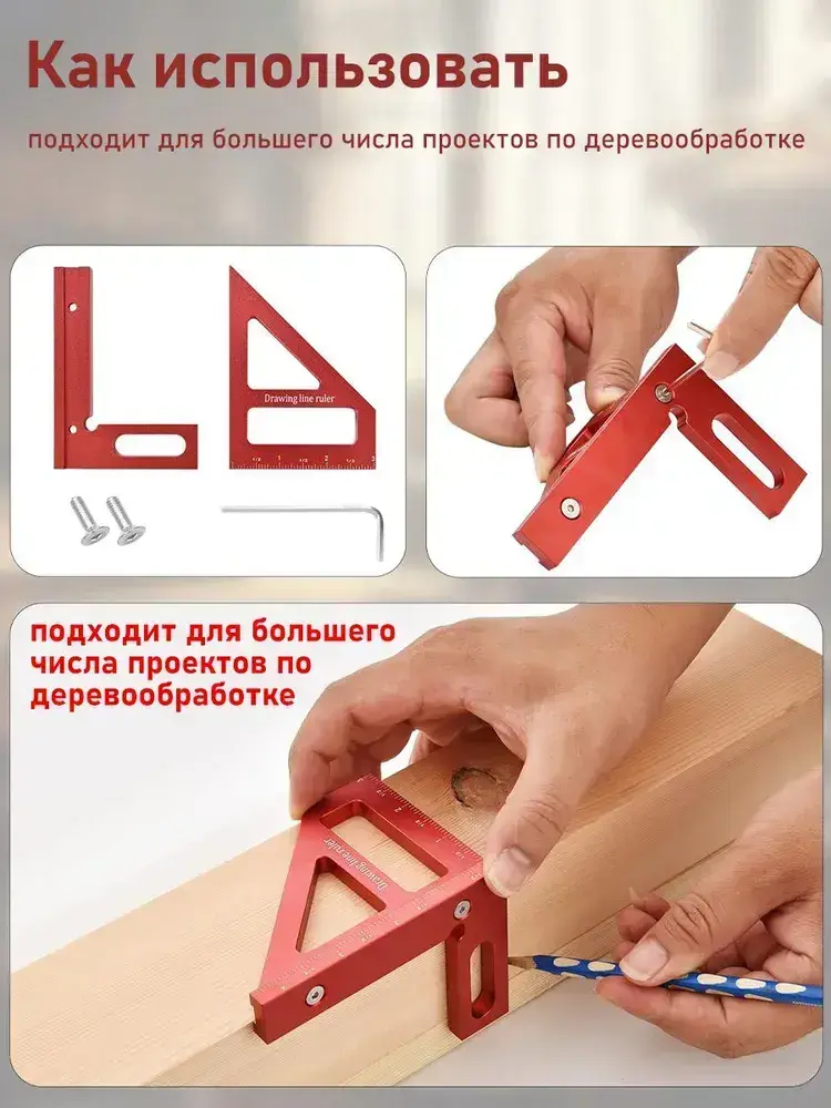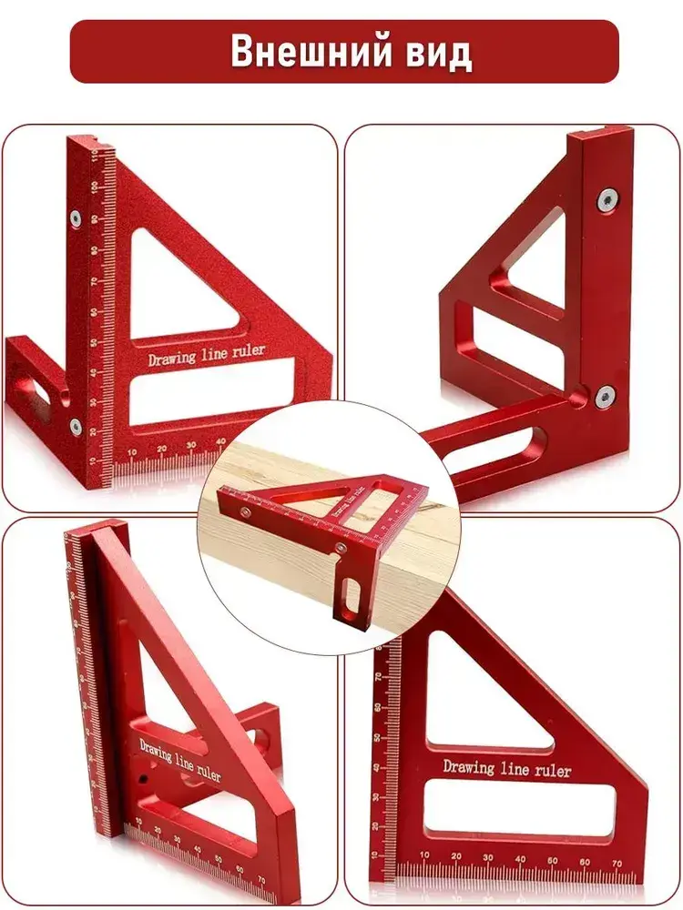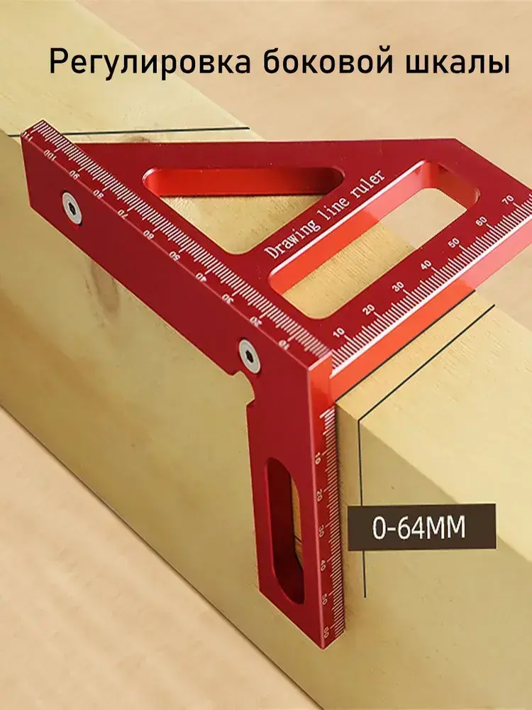 Линейка/угольник 112мм х 64мм, Угольник столярный, Алюминий