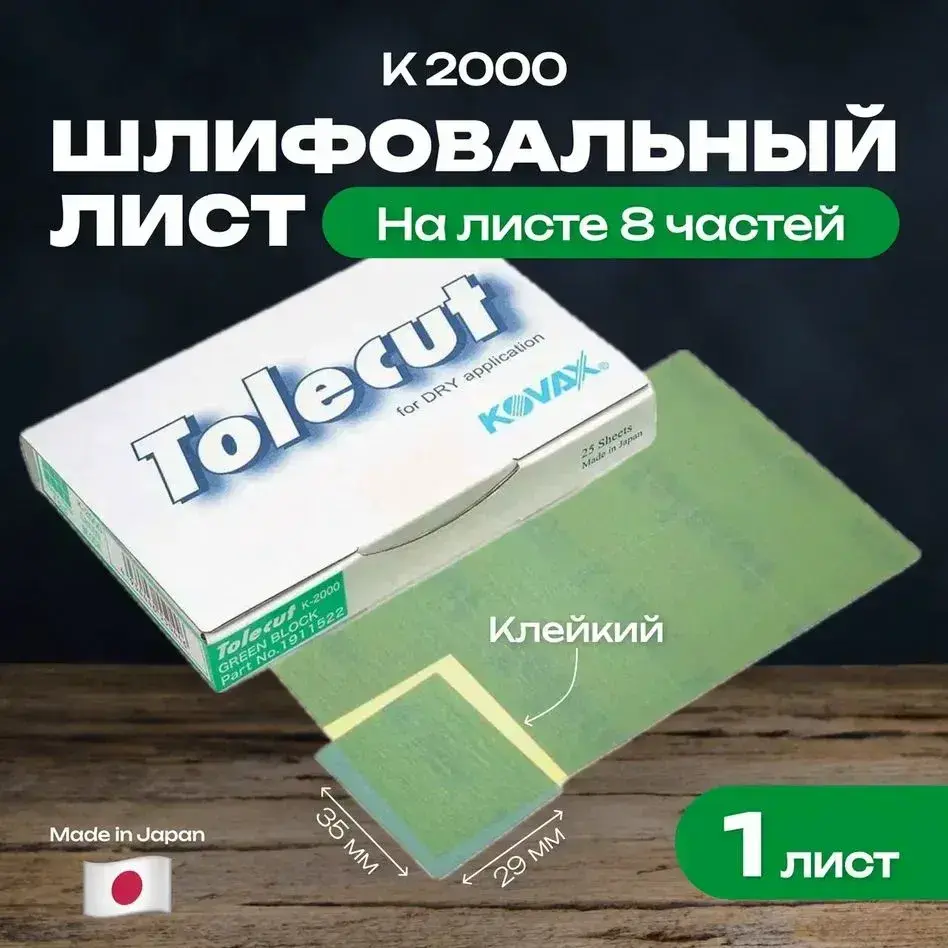 Лист клейкий Kovax Tolecut Green K2000, зеленый, 1 лист (8 наклеек 29*35мм)