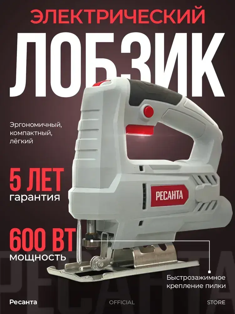 Лобзик электрический Л-600М Ресанта - 600 Вт, глубина пропила до 55мм, ГАРАНТИЯ 5 лет