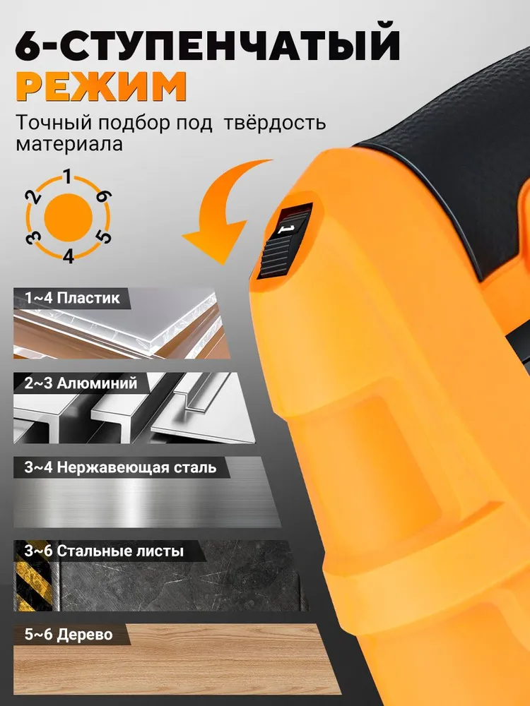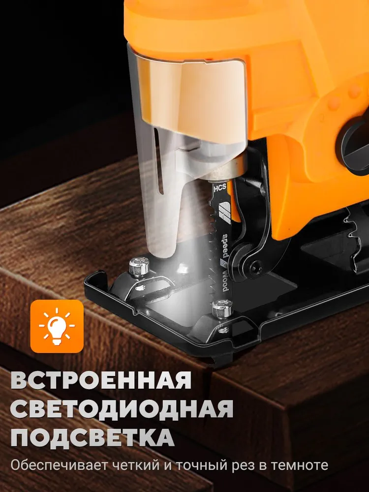 Лобзик электрический по дереву 850Вт, 95мм, 3000 раз/мин, маятниковый ход , подключение пылесоса ,подсветка