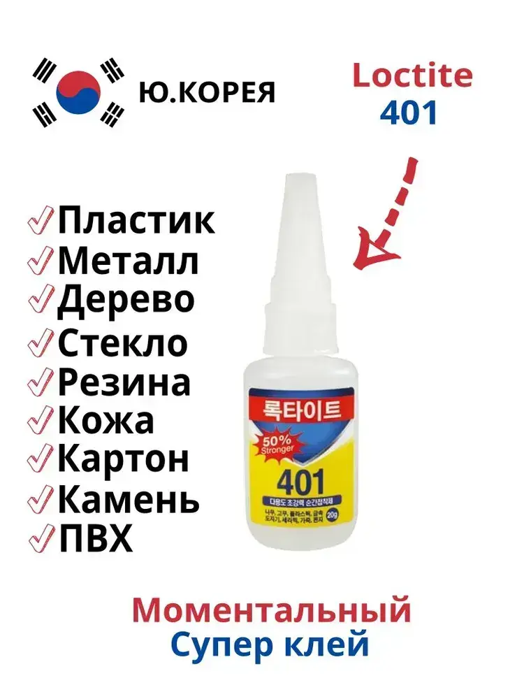 LOCTITE 401 суперклей моментальный универсальный цианоакрилатный, 20г, Корея