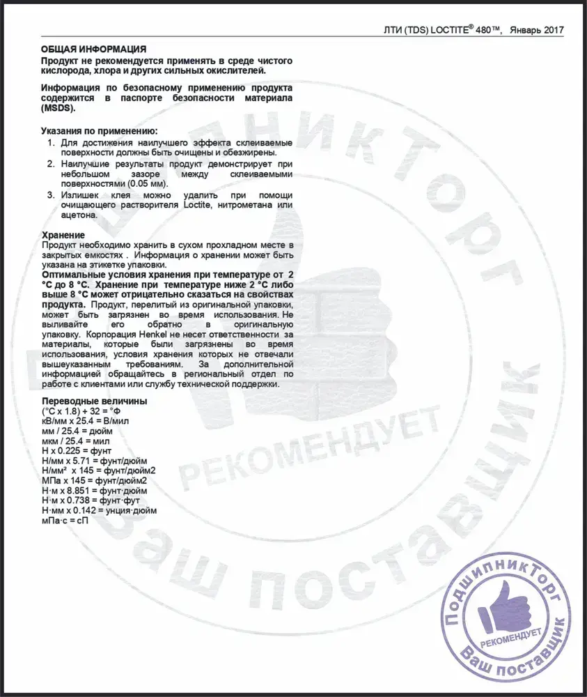 LOCTITE 480, 20 мл. Однокомпонентный цианоакрилатный клей.