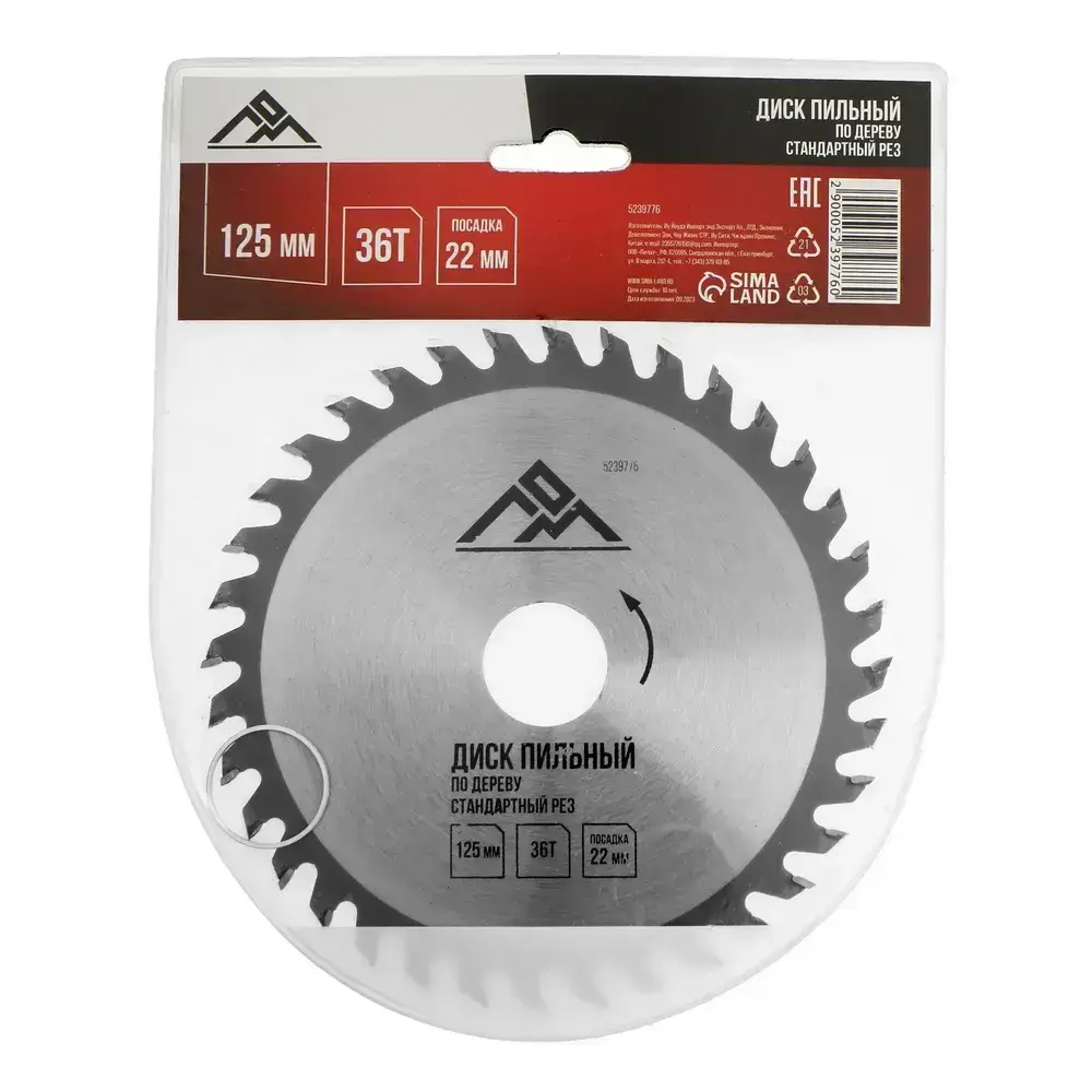 ЛОМ диск пильный 125 мм по дереву, 36 зубьев, стандартный рез