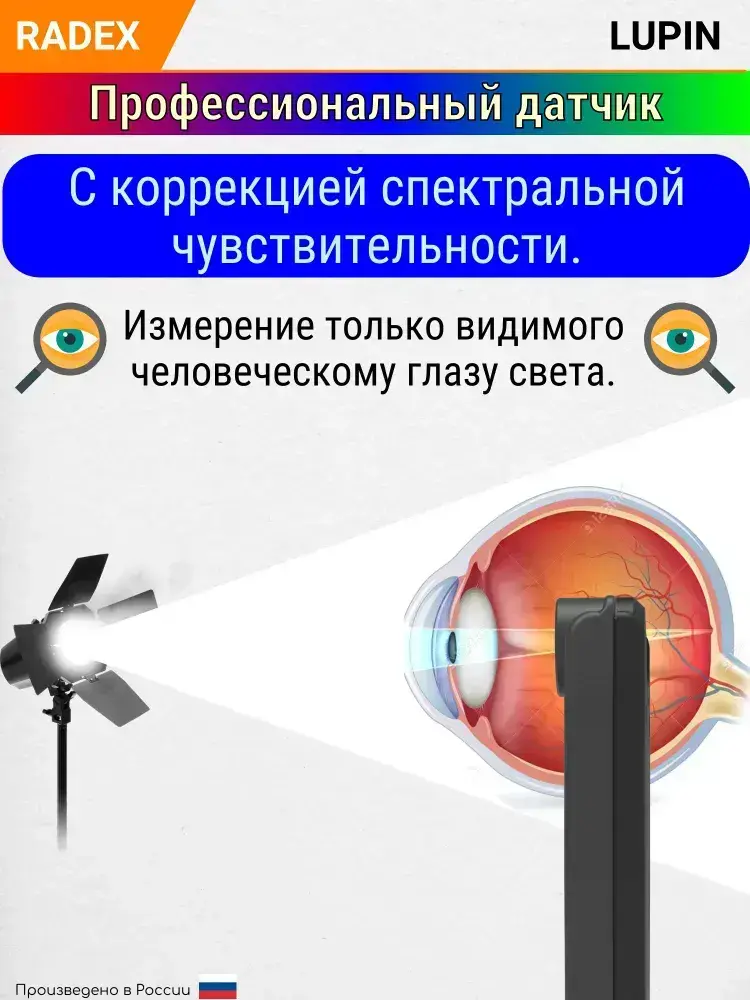 Люксметр RADEX LUPIN / Прибор для измерения освещения / Прибор для измерения коэффициента мерцания