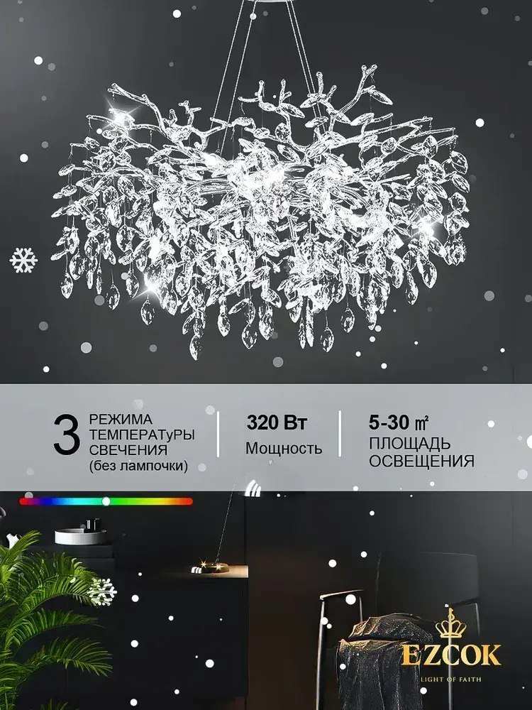 Люстра хрустальная потолочная 333007/600, люстра подвесная 320Вт