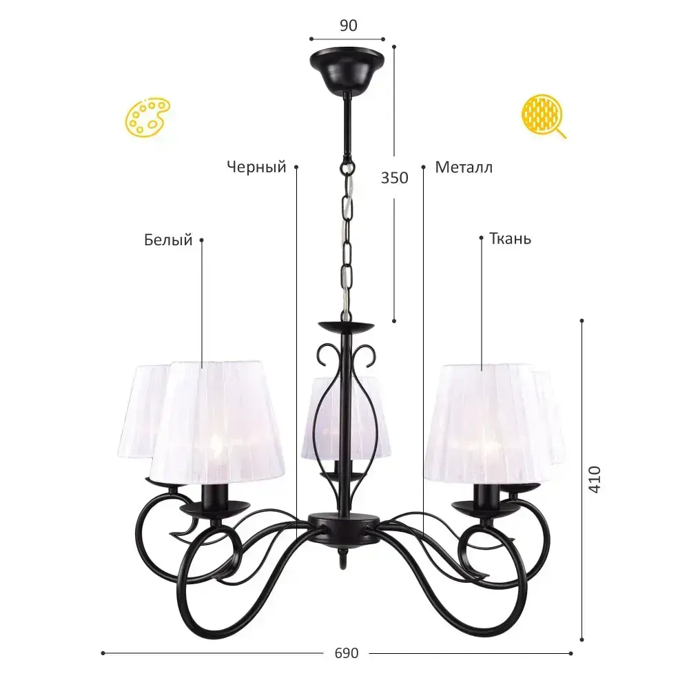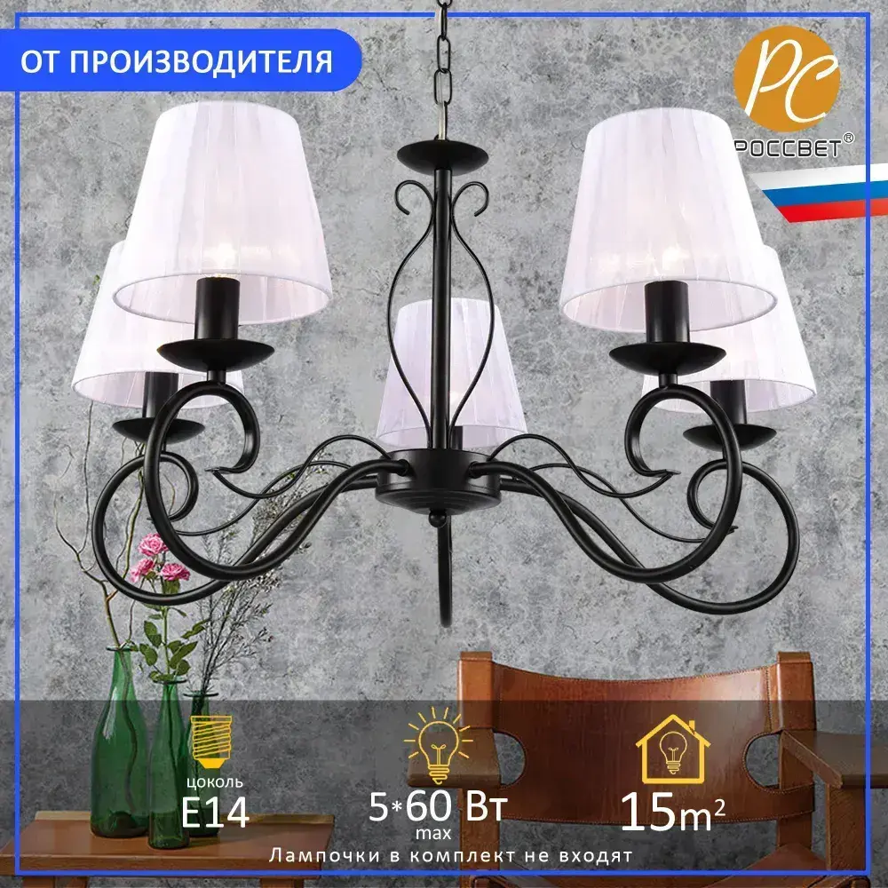 Люстра подвесная для спальни и гостиной РОССВЕТ "Танго" РС20945 BK/5P