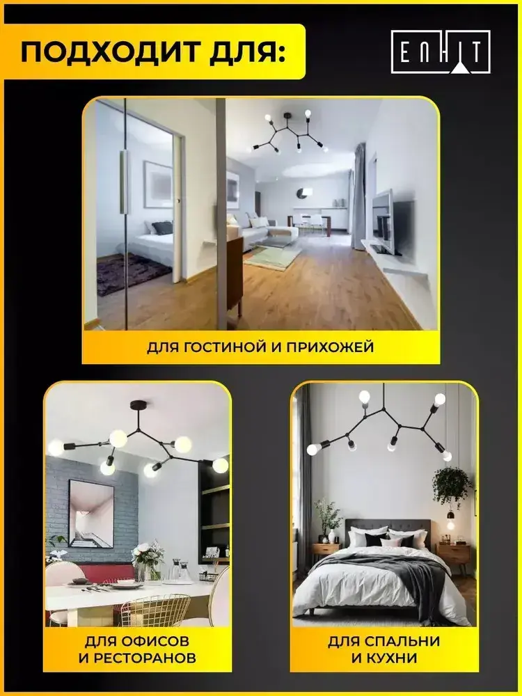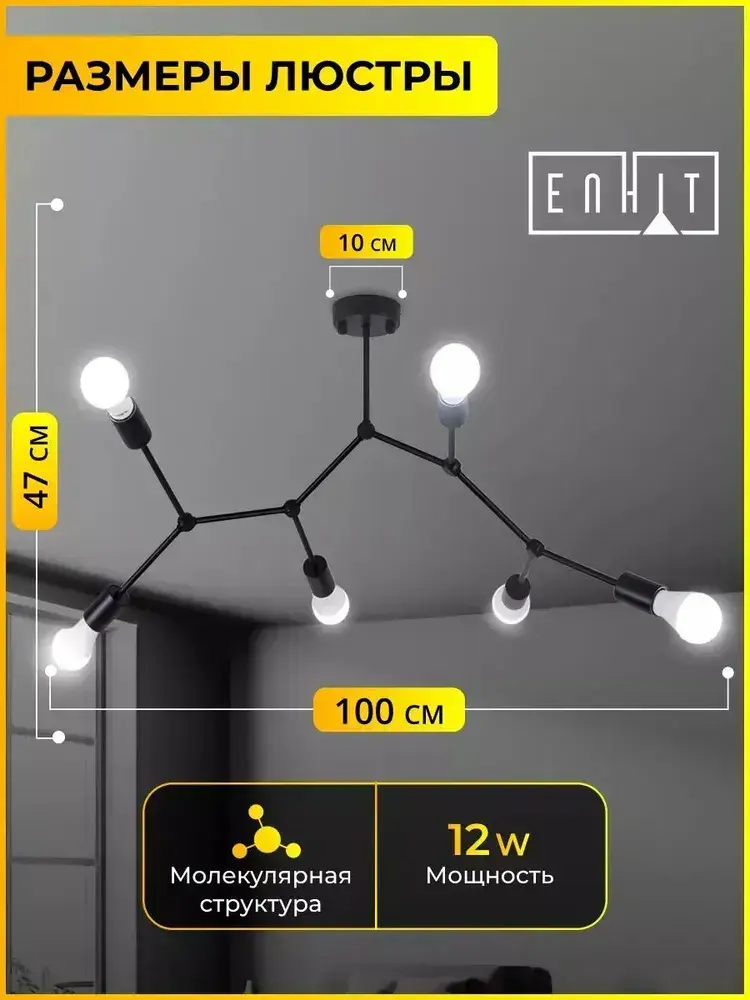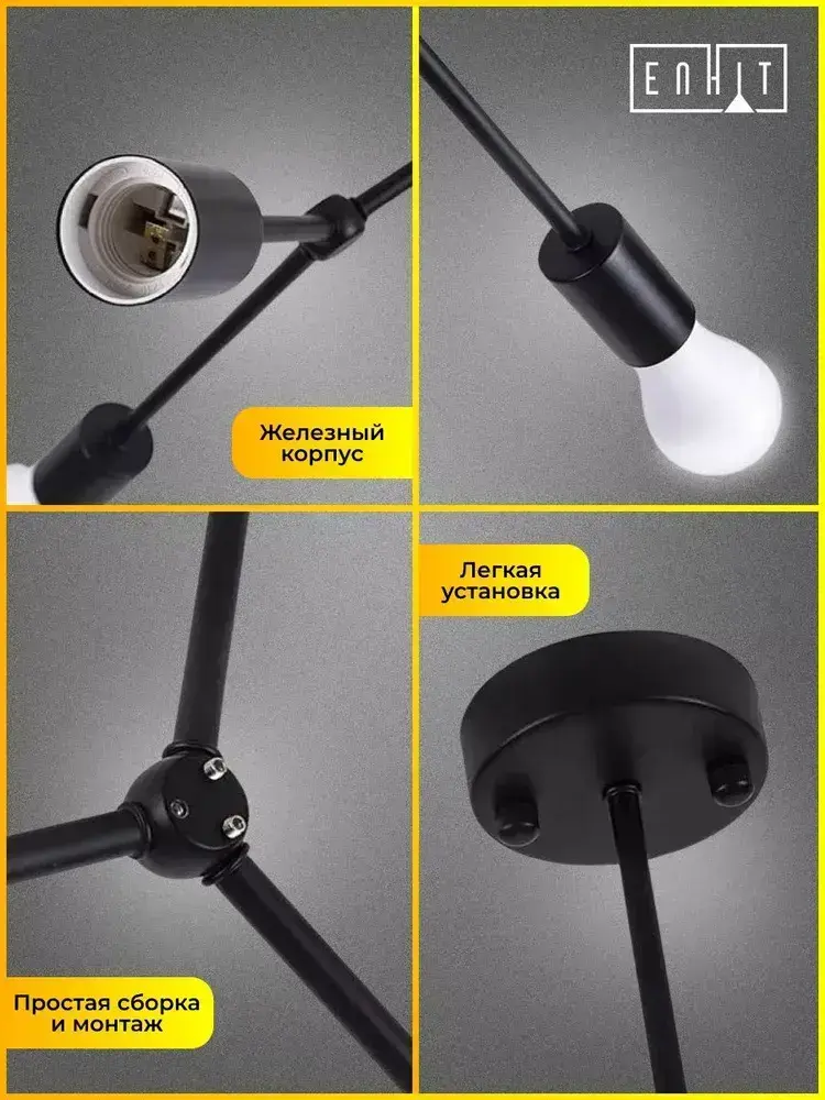 Люстра потолочная подвесная для зала спальни и на кухню в современном стиле лофт черная
