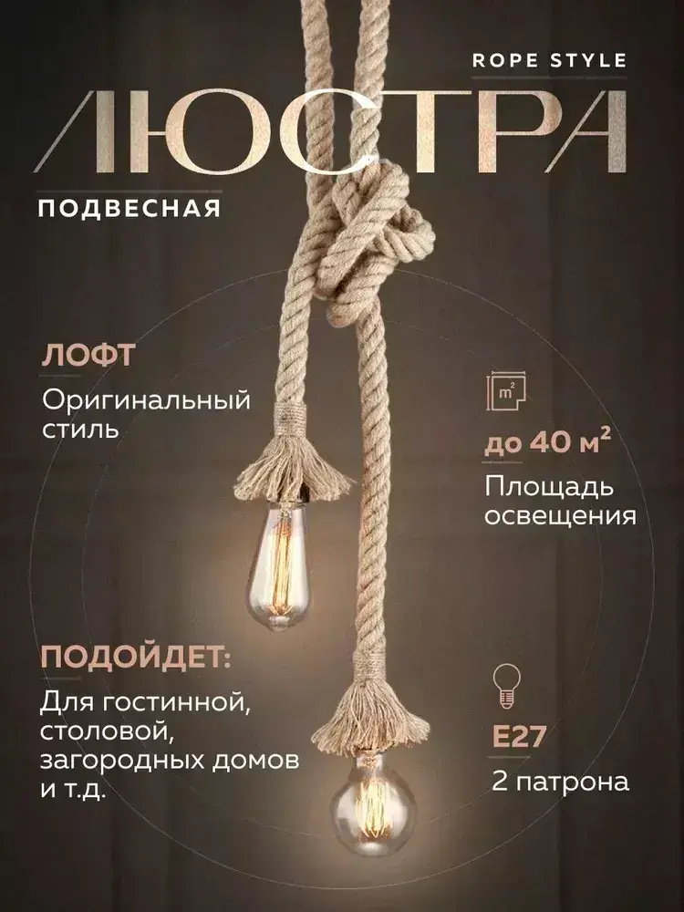 Люстра потолочная подвесная канат Rope Style / Светильник подвесной Лофт