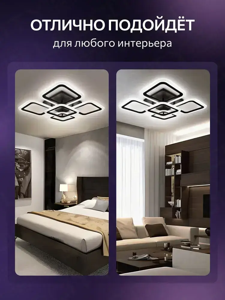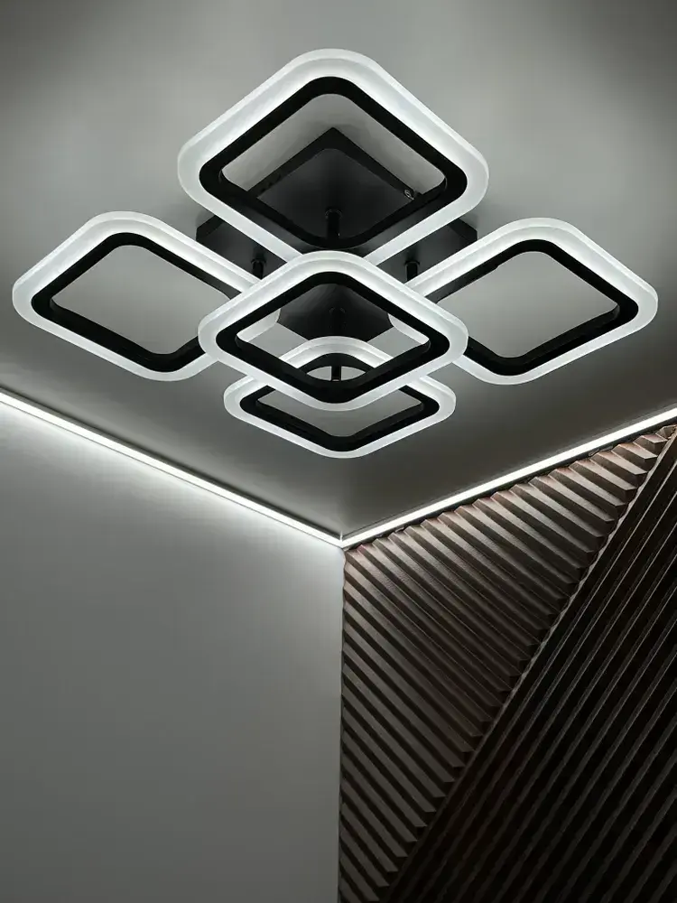 Люстра потолочная с пультом, черная, светильник