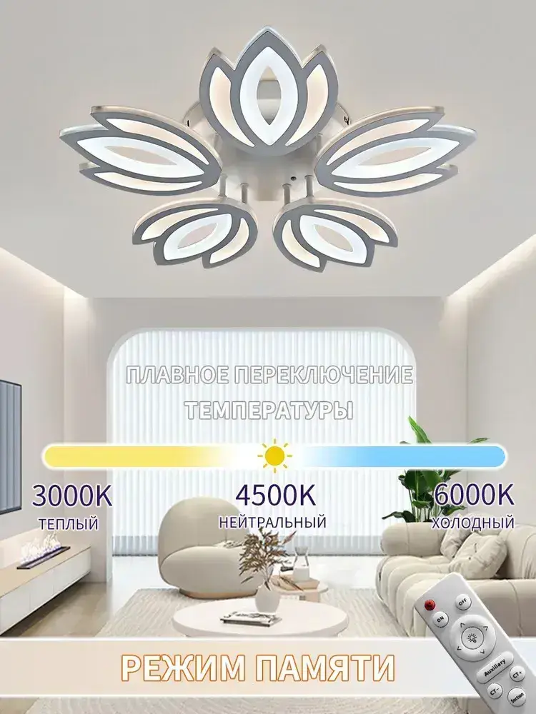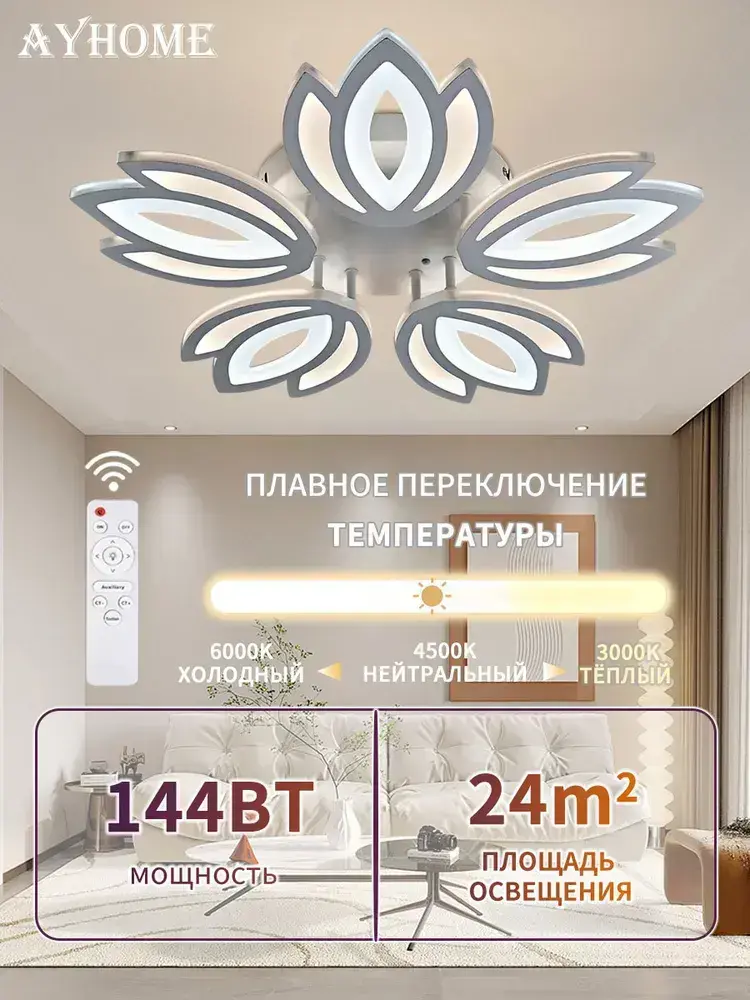 Люстра потолочная светодиодная и управлением пульт,144 Вт,регулируемая яркость и цветовой температуры 3000K-6000K,AYHOME