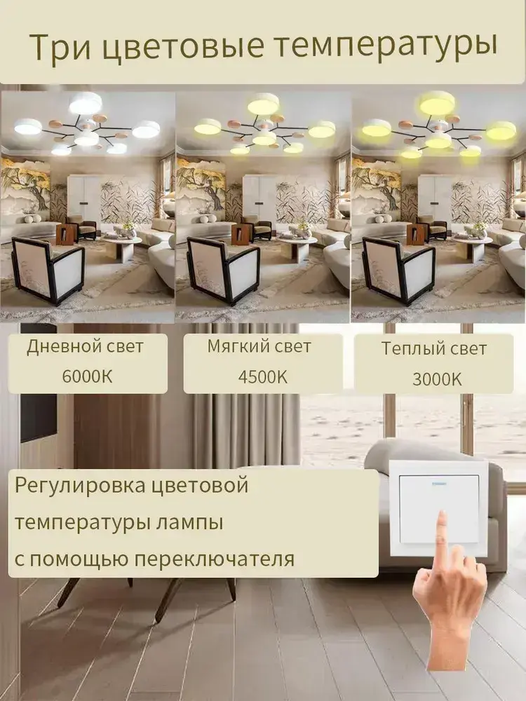 Люстра потолочная светодиодная на кухню,72 Вт,рис. реакционер,регулируемая цветовая температура