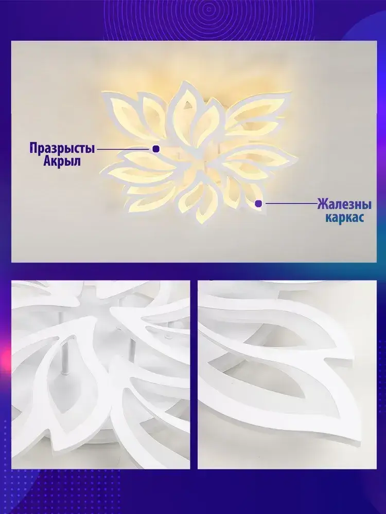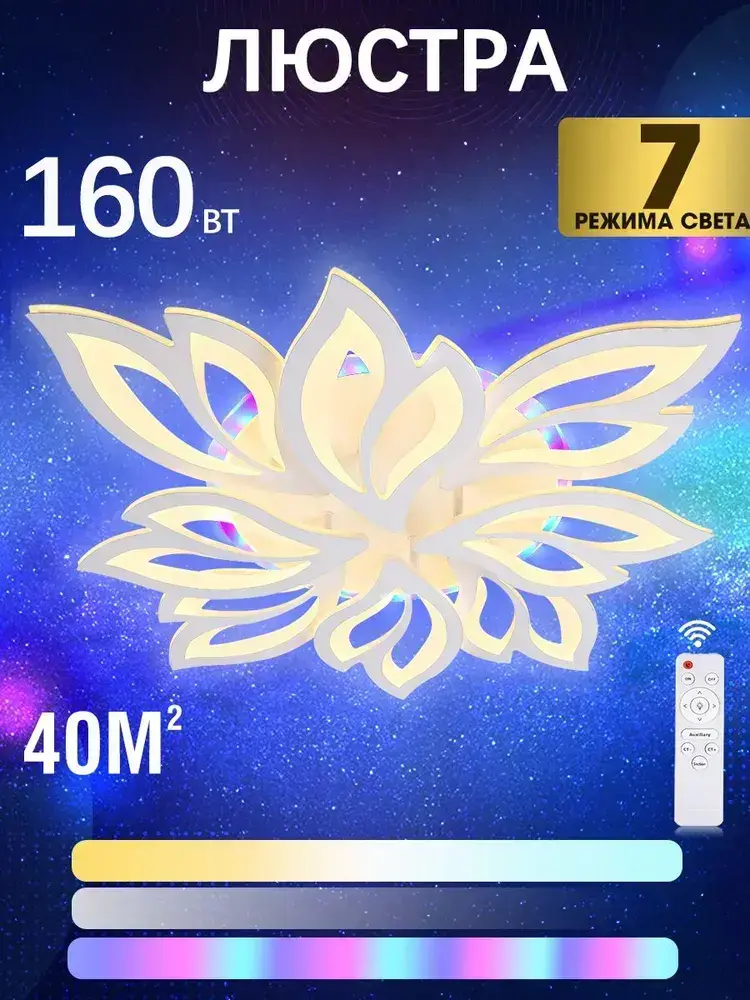 Люстра потолочная светодиодная с пультом, белая, для всех видов потолков, 160W + 8W (RGB)
