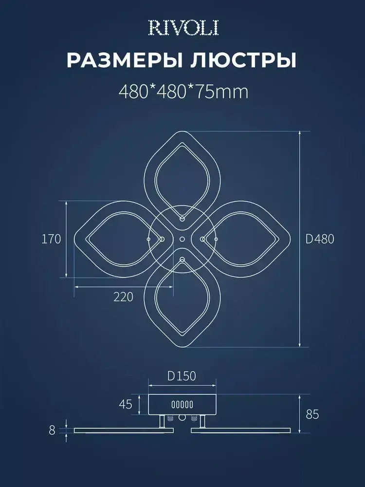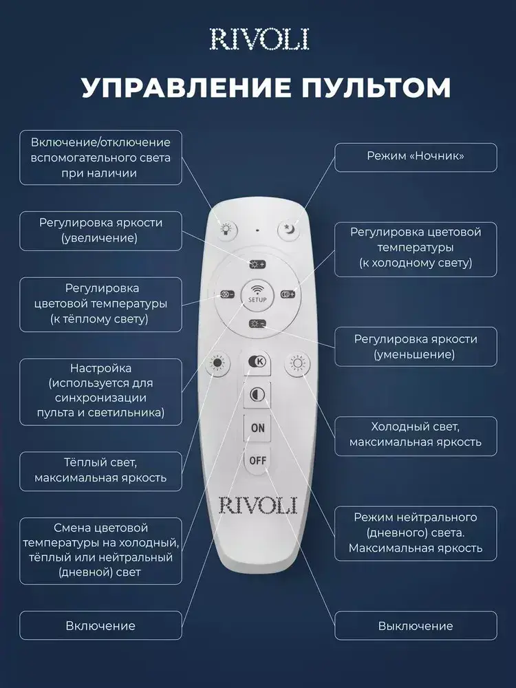 Люстра потолочная светодиодная с пультом ДУ Rivoli белая 56Вт 2800-6300К, светильник на кухню, в детскую, в спальню