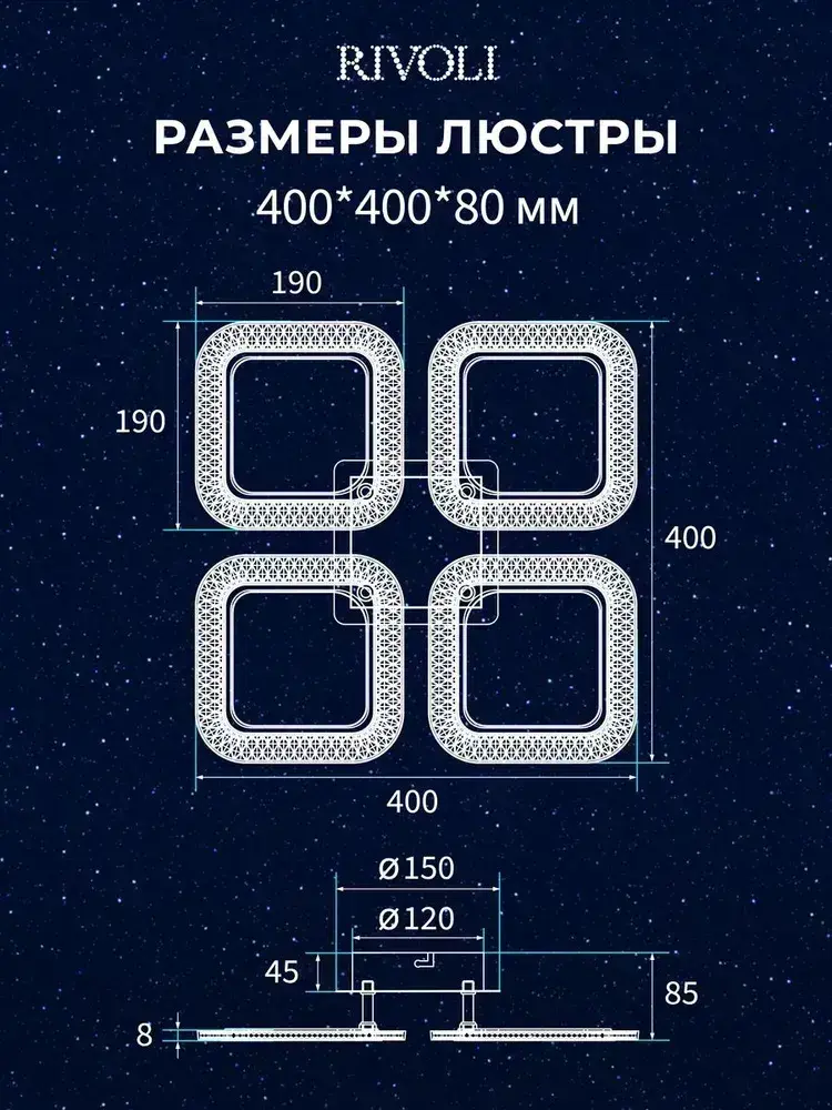 Люстра потолочная светодиодная с пультом ДУ Rivoli белая 64 Вт LED 2800К - 6200К, светильник на кухню, в детскую, в спальню